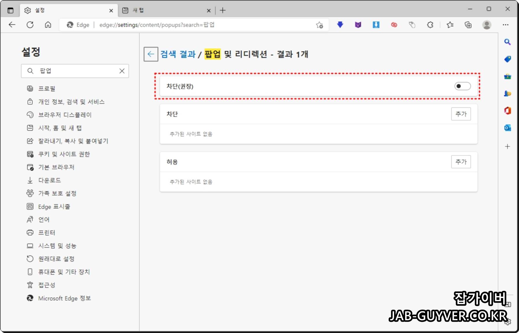 그 외에도 자동으로 실행되는 인터넷 창의 팝업 창을 차단해줍니다.