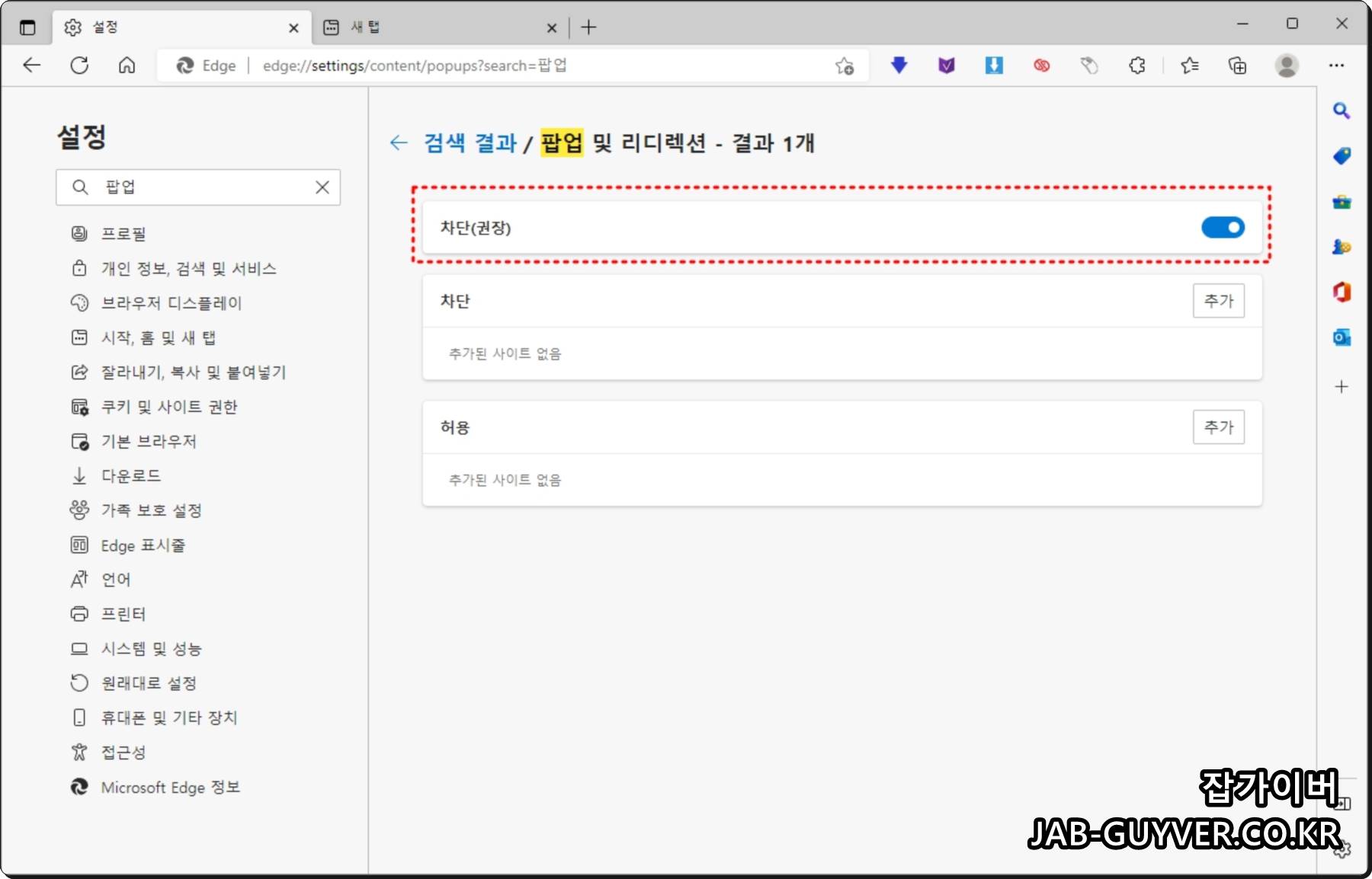 그 외에도 자동으로 실행되는 인터넷 창의 팝업 창을 차단해줍니다.