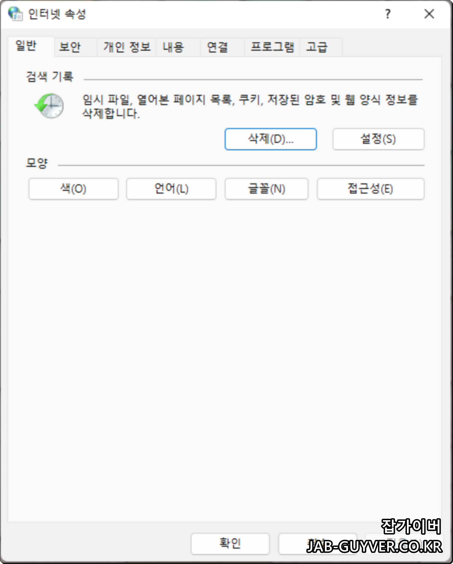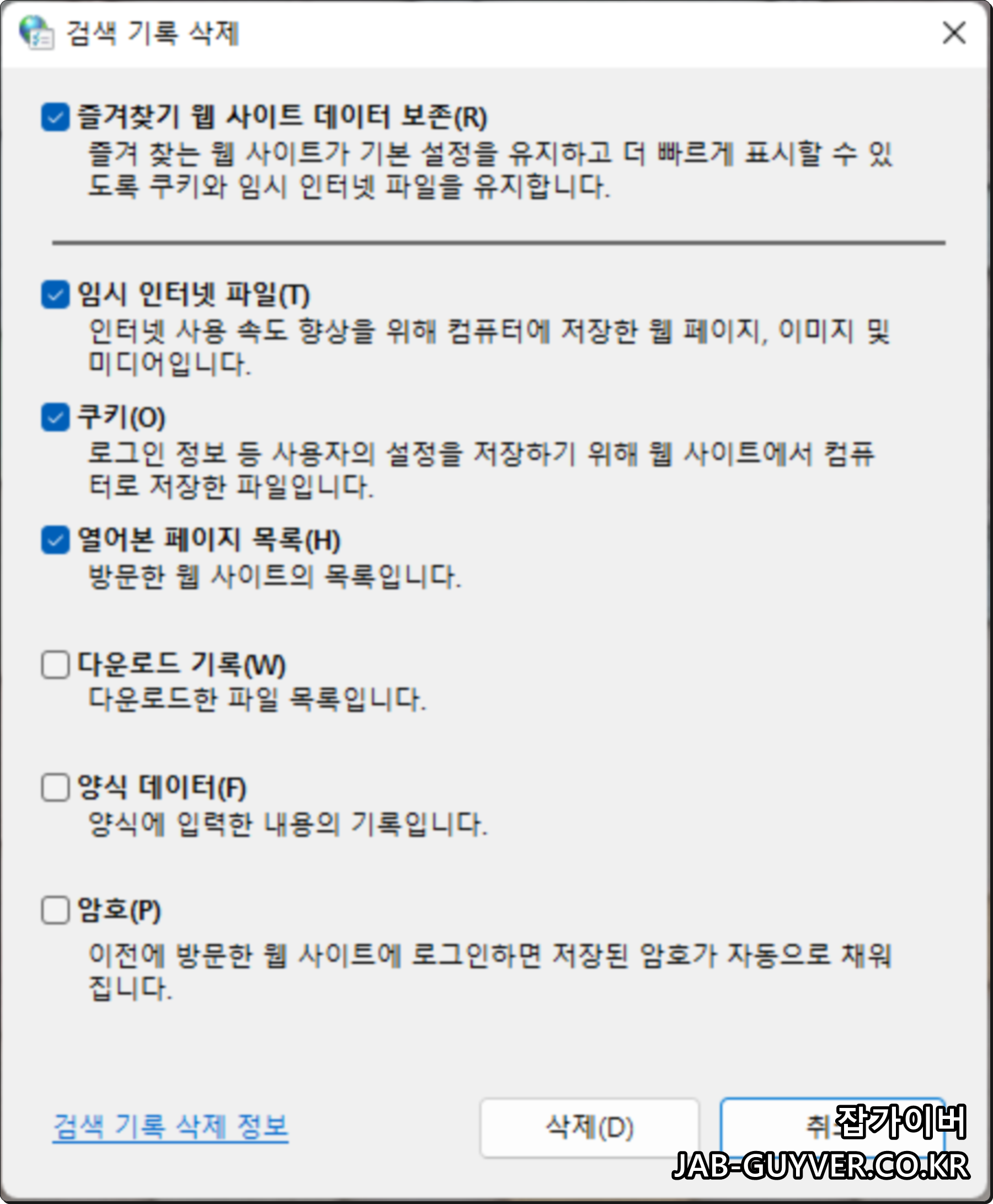 인터넷 검색기록 삭제