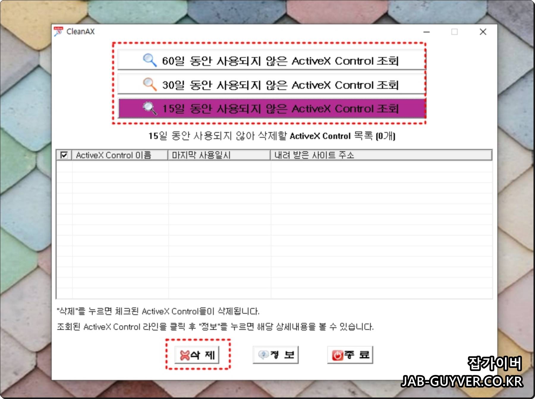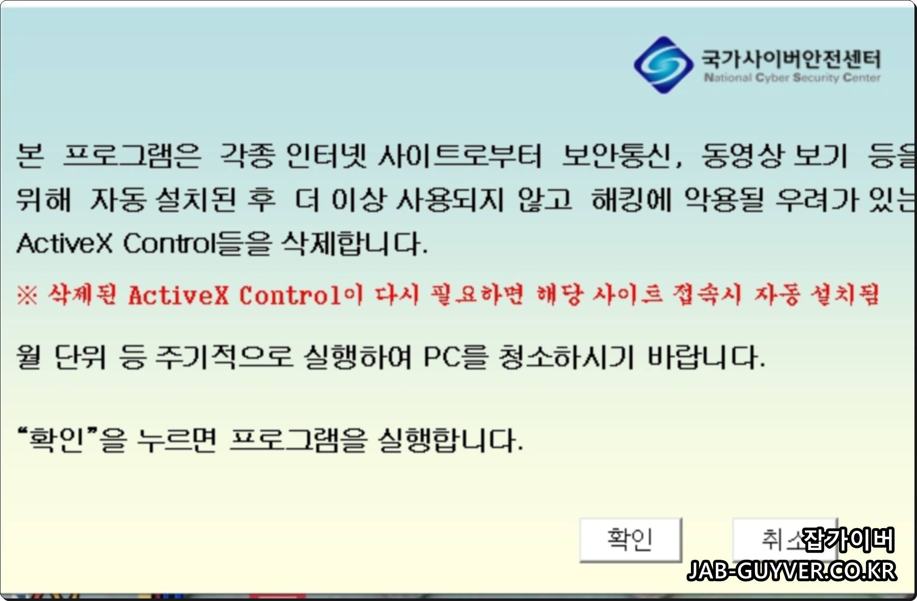 각종 인터넷 사이트로부터 보안통신 및 동영상 보기등등 자동설치된 후 더 이상 사용되지 않은 해킹에 악용될 소지가 있는 Active X Control을 삭제합니다.