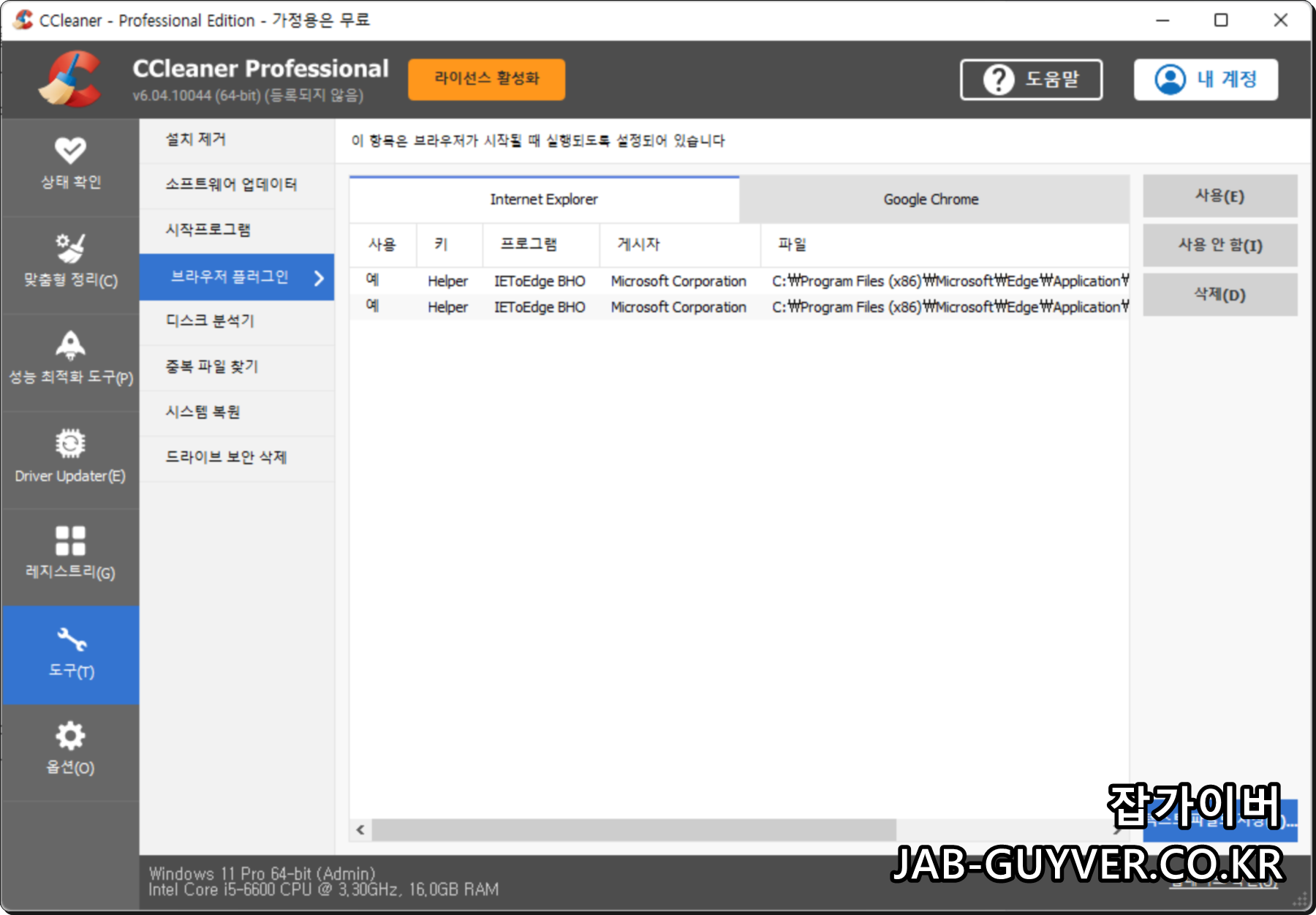 CCleaner 인터넷 브라우저 삭제