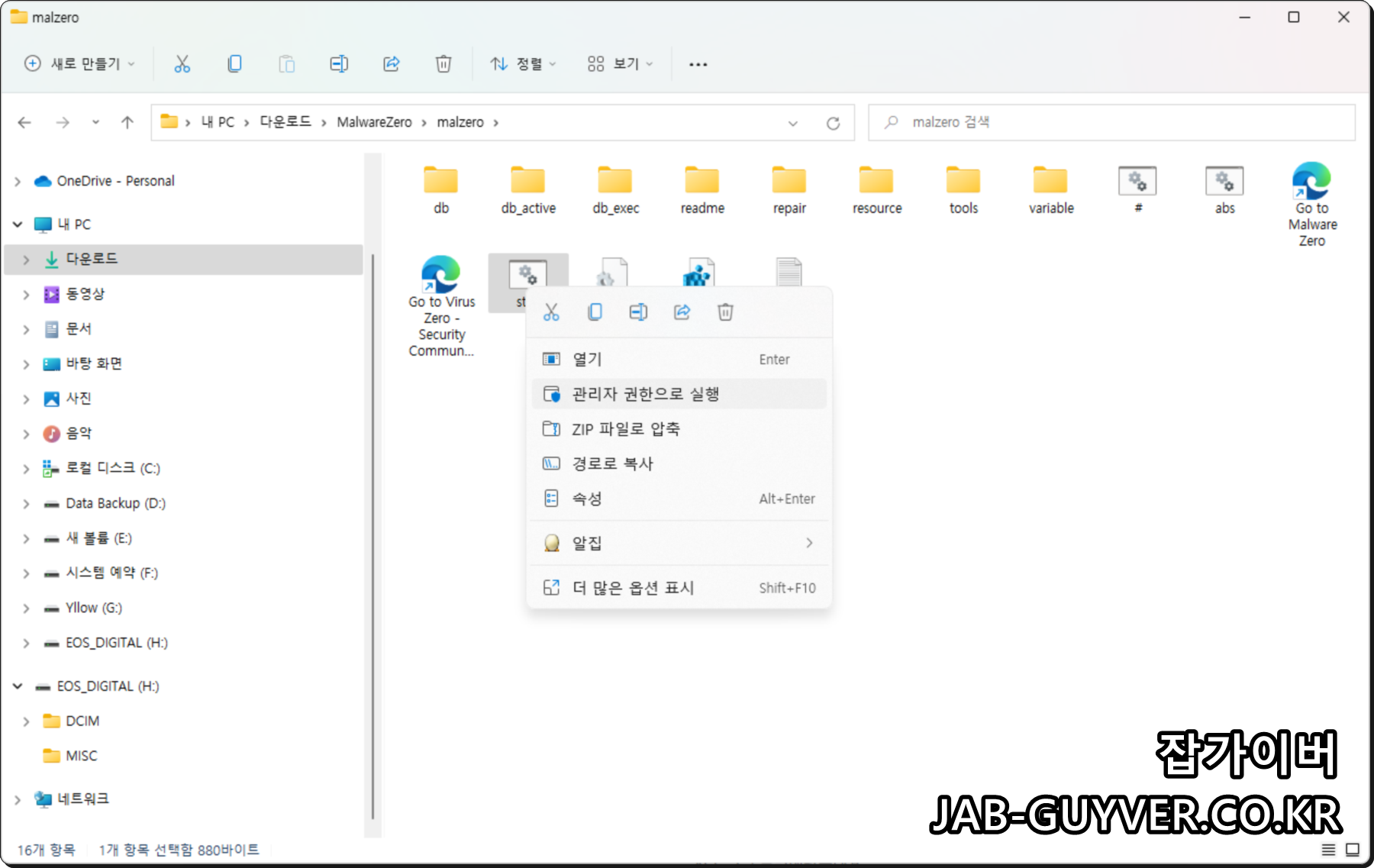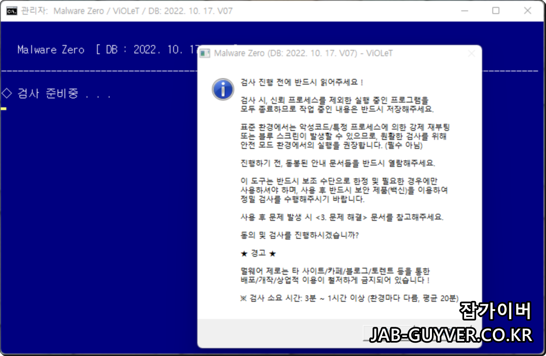 실행은 관리자권한으로 실행 후 PC 내 멀웨어 및 유해한 악성코드를 제거해주는 무료프로그램입니다.