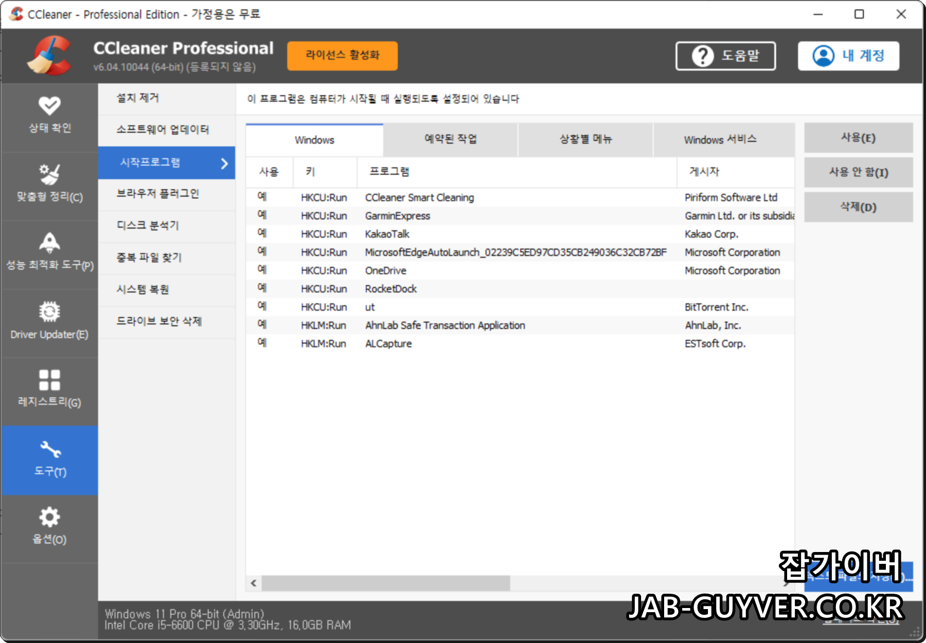 저 같은 경우 윈도우 내 느려지는 필요없는 앱을 삭제해 최적화하고 멀웨어나 바이러스등 위험한 앱을 자동으로 차단하기 위해 CCleaner를 주로 사용합니다.