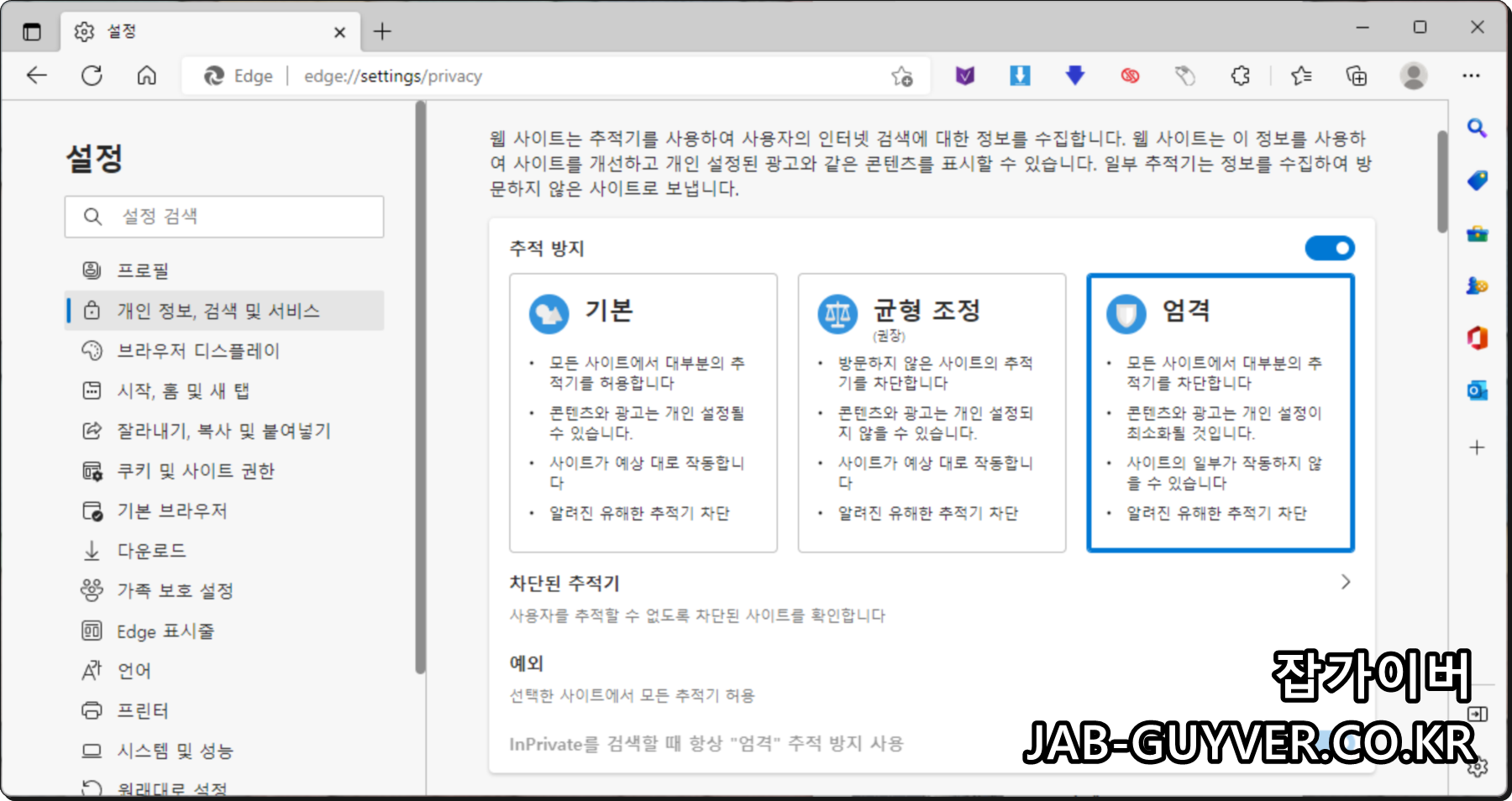 마이크로소프트 엣지 개인정보 광고차단 보호
