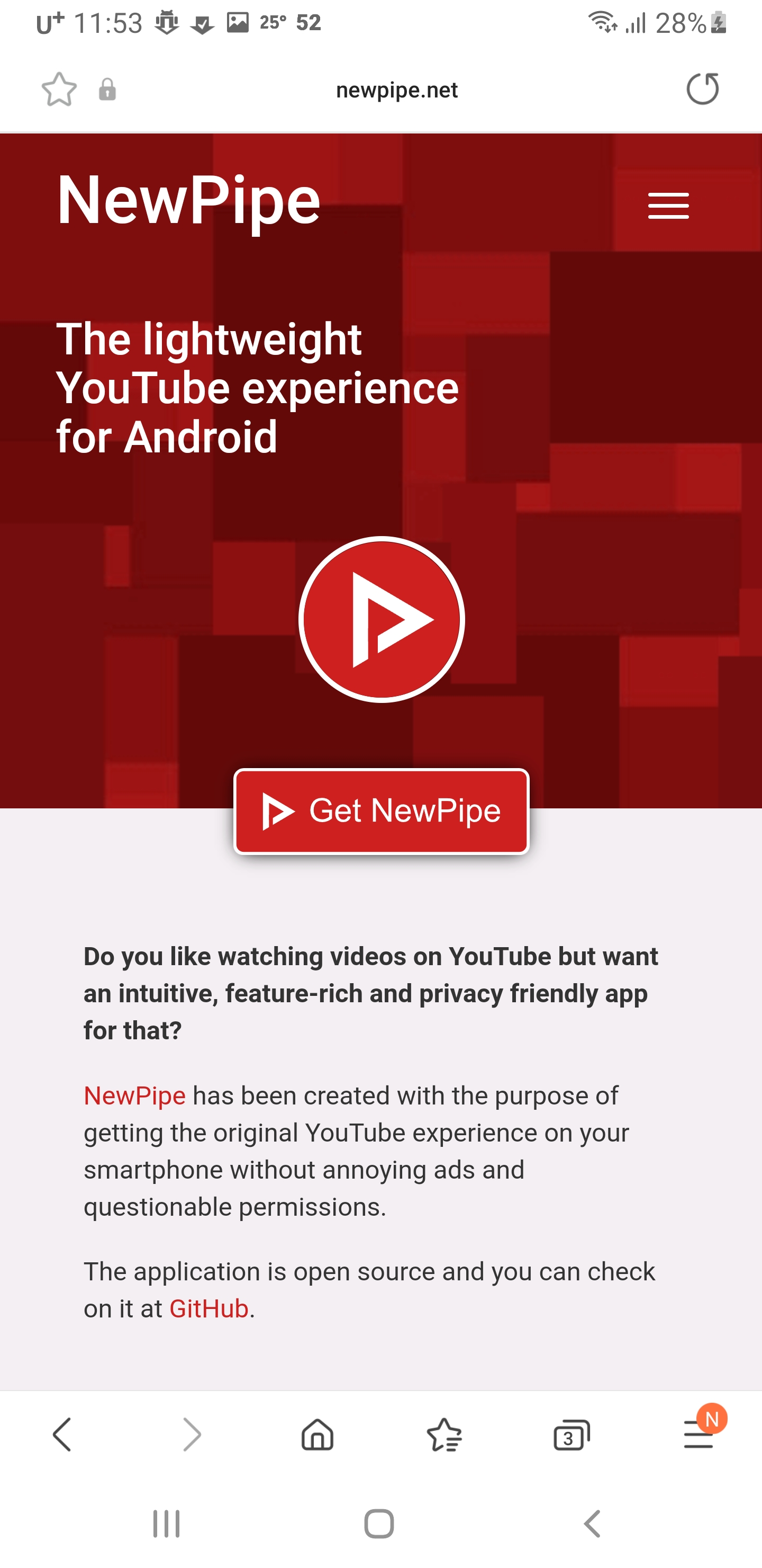 깃허브에서 제공하는 NewPipe 정보는 아래 참고하세요
