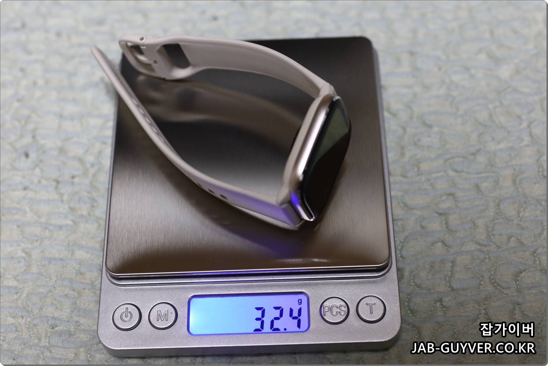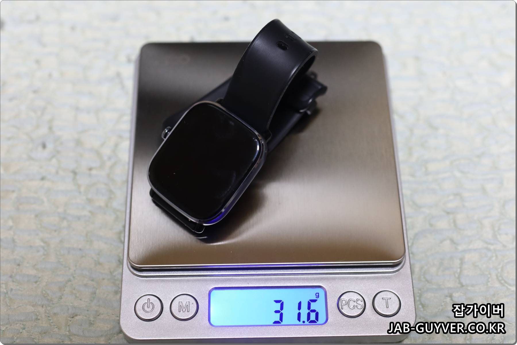 실제 측정 무게는 GTS2 미니 약 31.6g, GTS4 미니 약 32.4g 정도로 스펙상 수치에 비해 큰 차이는 느껴지지 않습니다. 시계를 잘 안 차던 사람도 이 정도면 금방 적응할 만한 수준입니다.