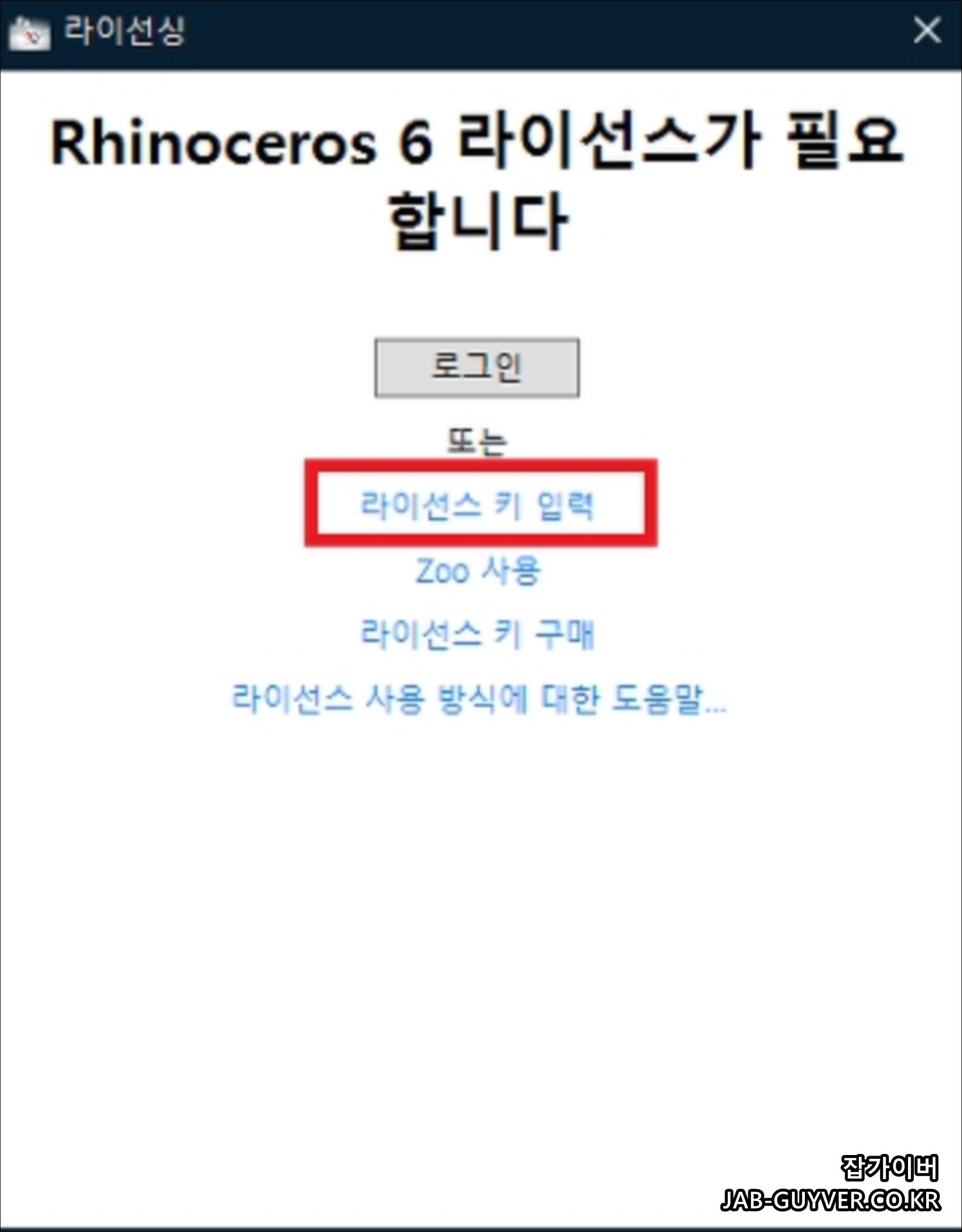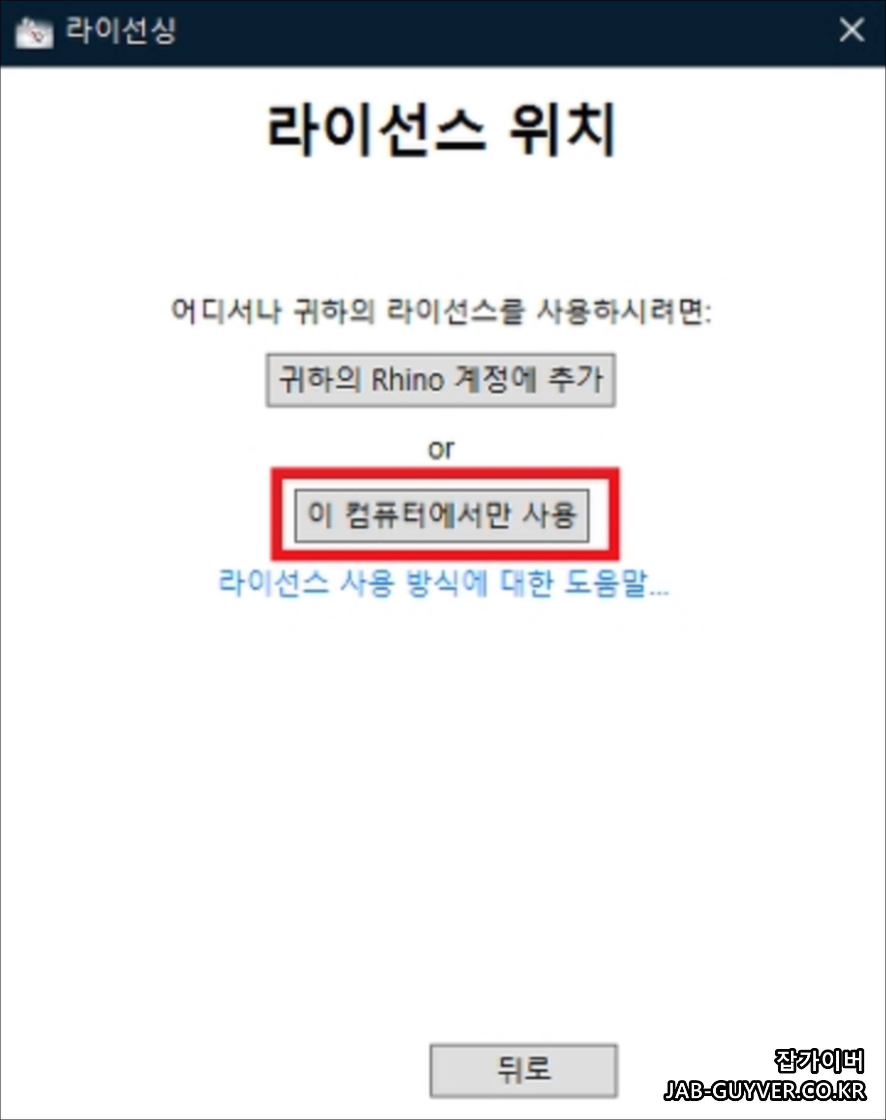 이 컴퓨터에서만 사용을 선택 후 가입한 라이노 계정을 입력해줍니다.
