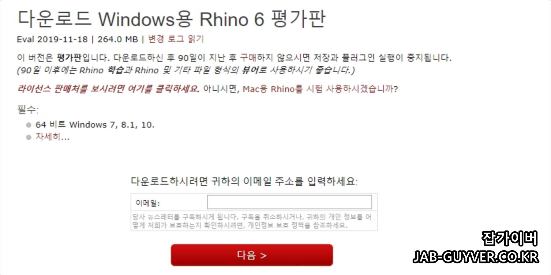 라이노3D 평가판을 받기 위해서는 이메일주소를 입력합니다.