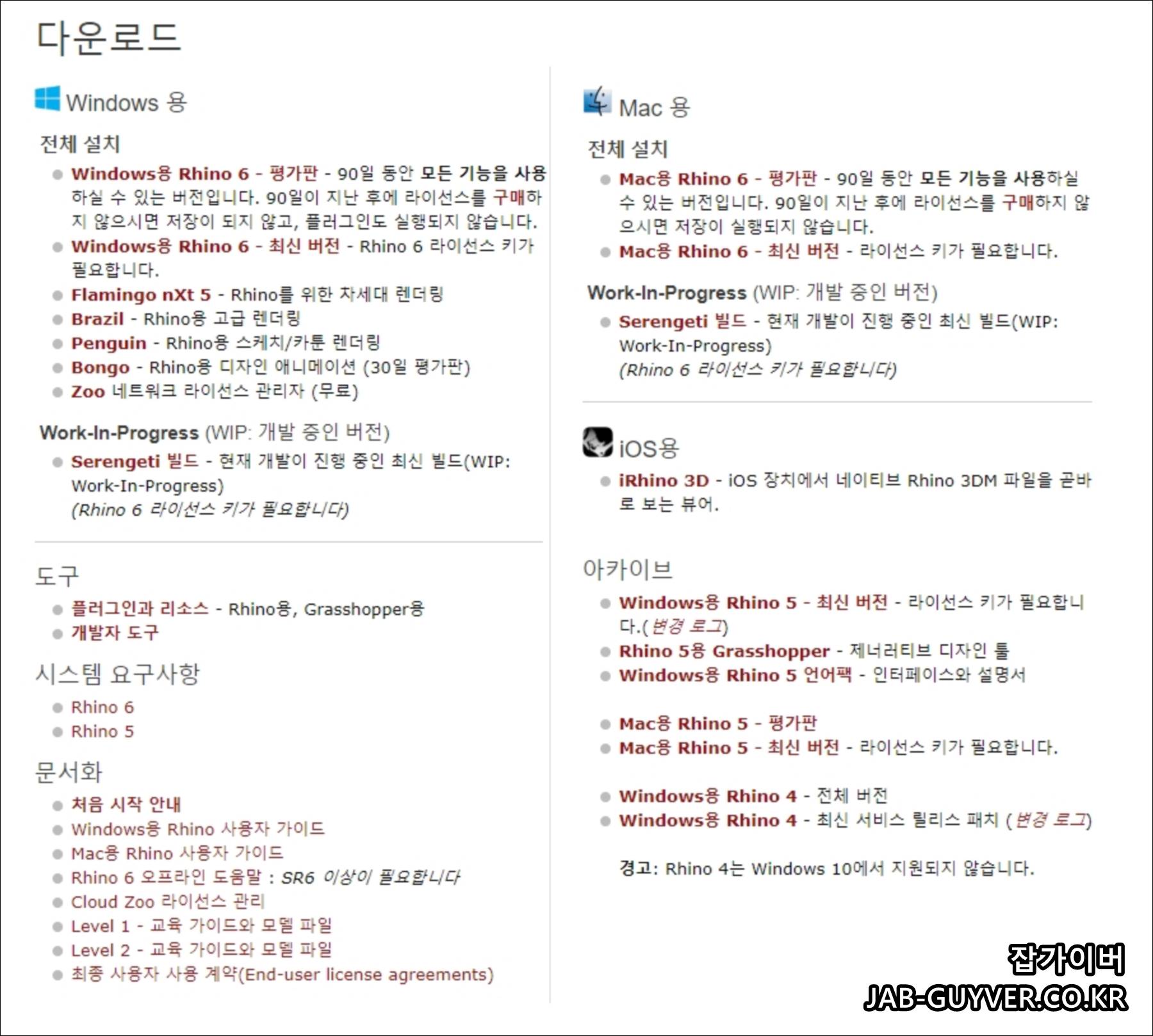 그럼 라이노 설치파일을 다운로드 받아 설치가 가능합니다.