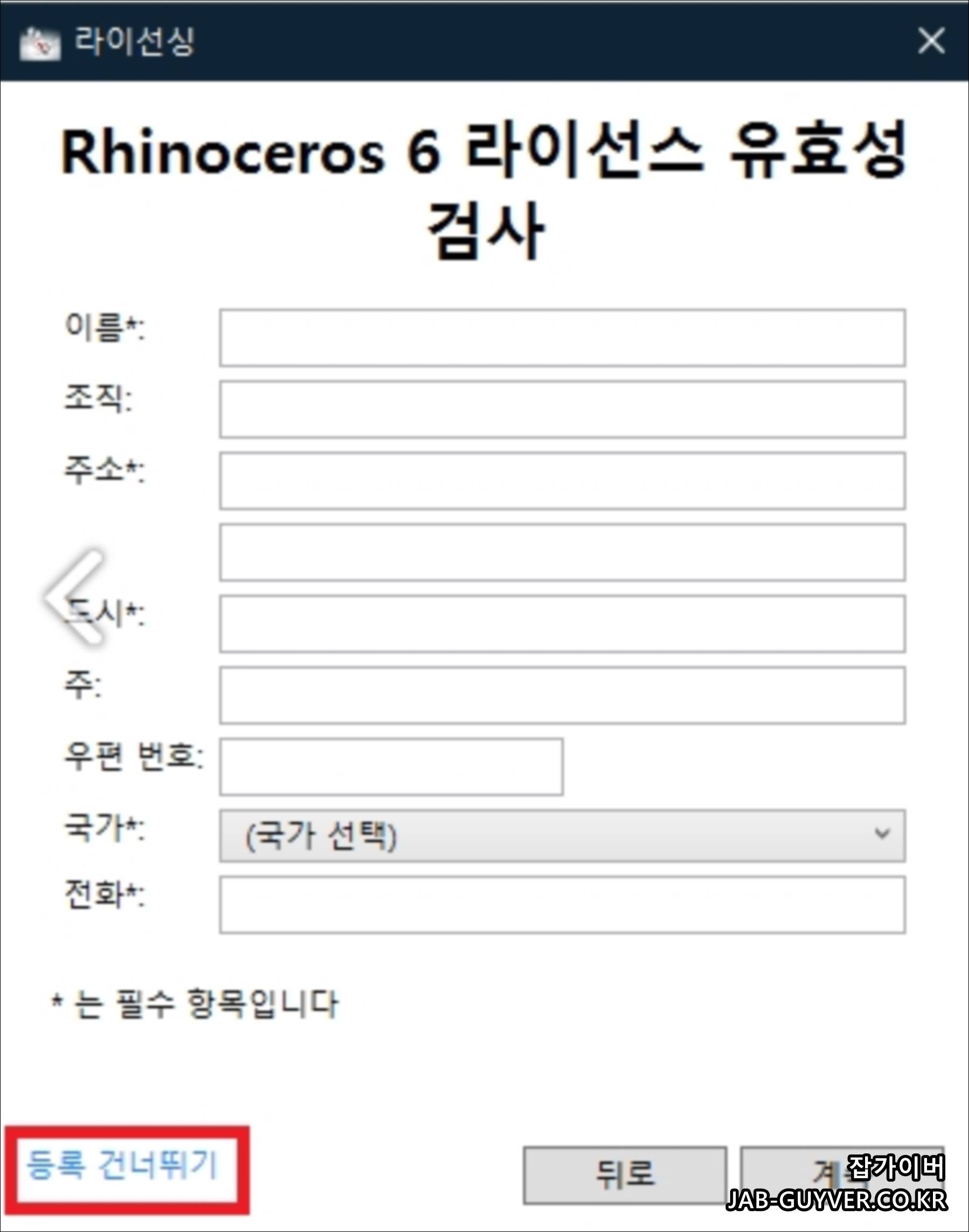 유효성 검사가 뜨면 등록 건너띄기를 선택합니다.