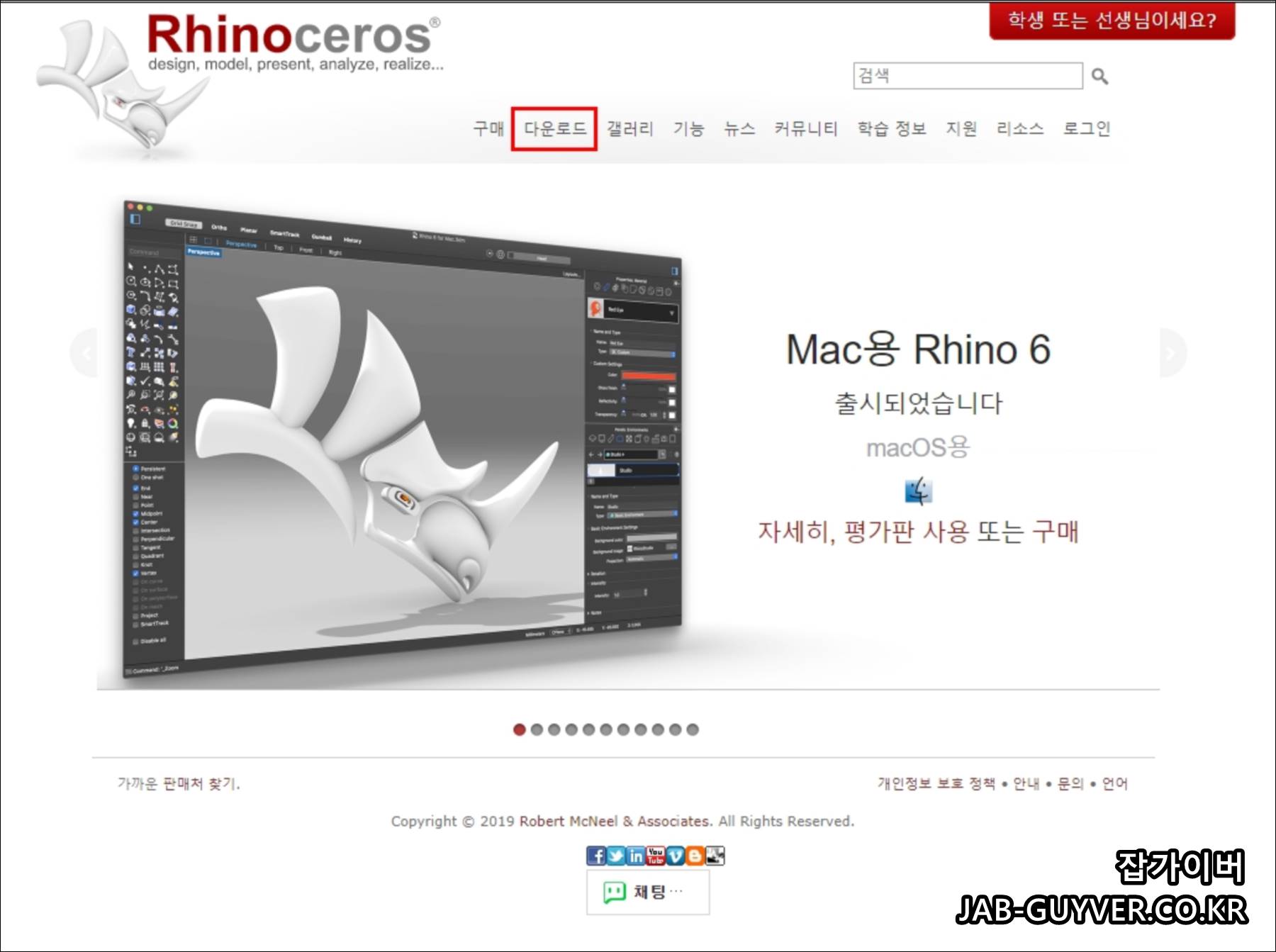 라이노 체험판을 다운로드 받기 위해서는 Rhinoceros 홈페이지에 접속합니다.