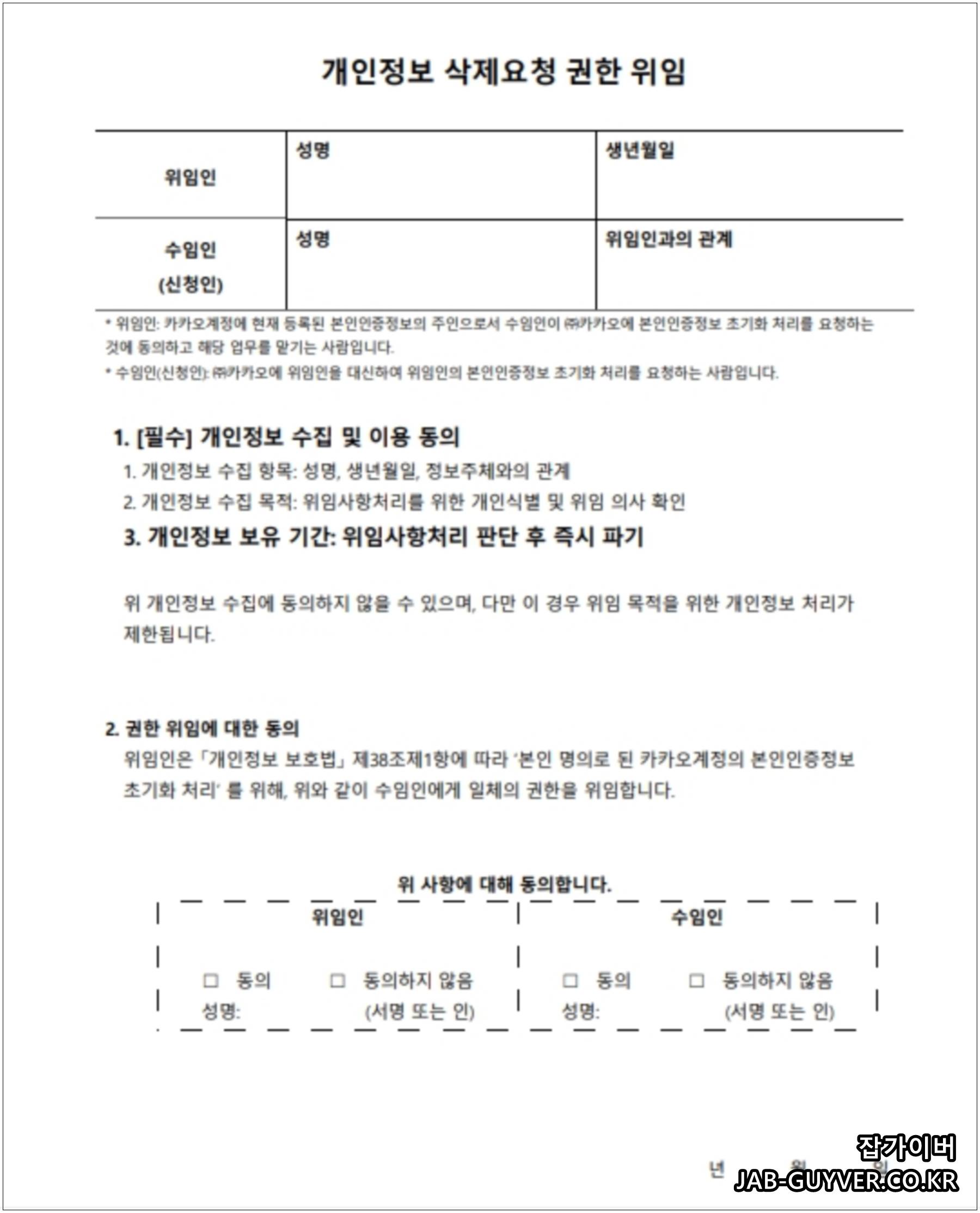 - 개인정보 삭제요청 권한 위임장
