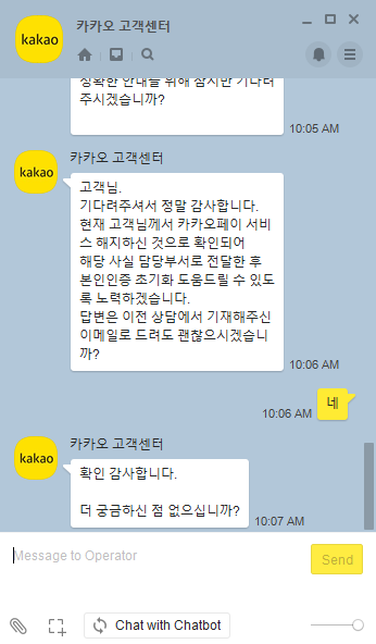 이후 카카오 고객센터를 통해 준비한 서류를 전달해서 제출합니다.
