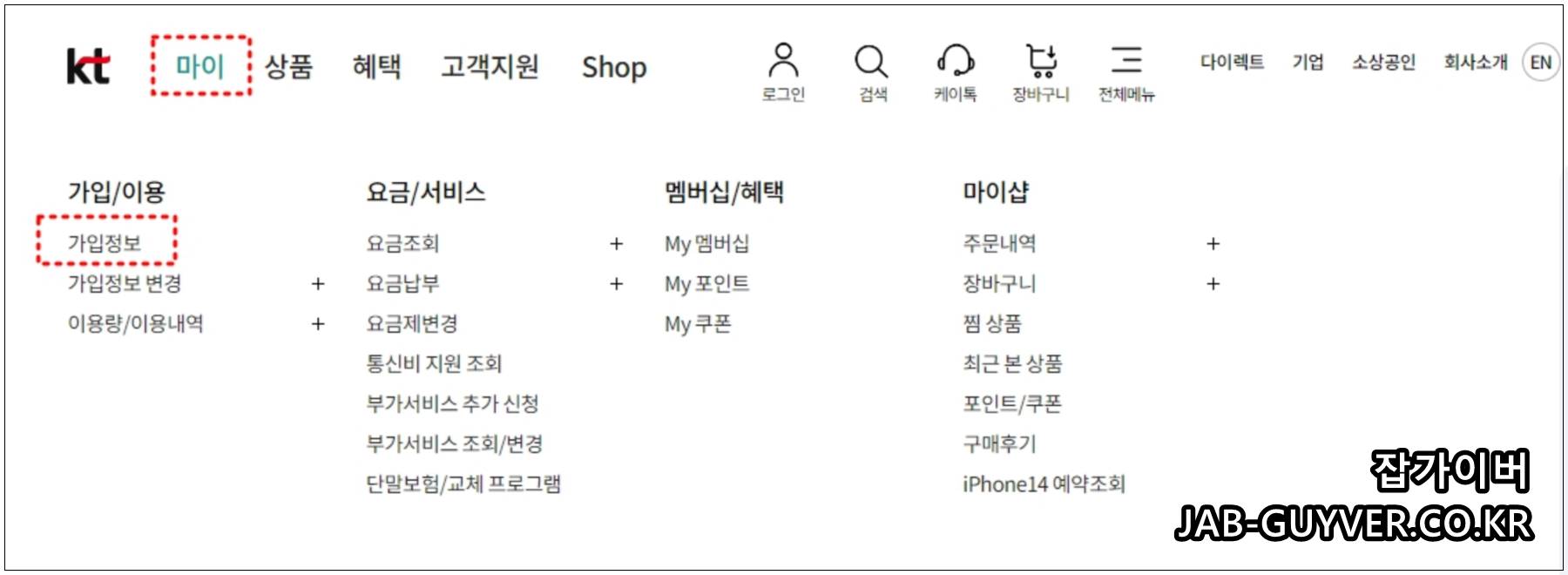 KT의 경우 마이 -> 가입정보를 통해 증명서를 발급받을 수 있습니다.