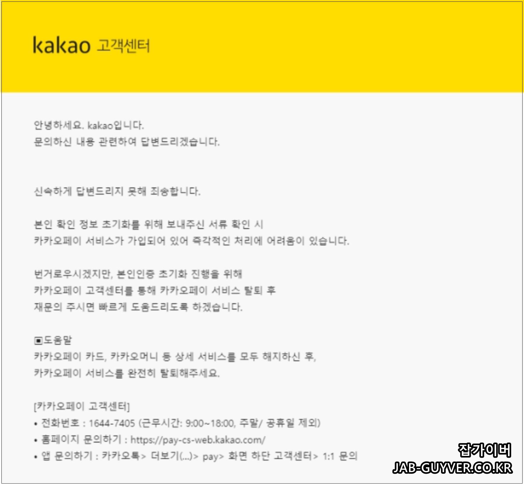 카카오계정 본인확인정보 초기화 요청서