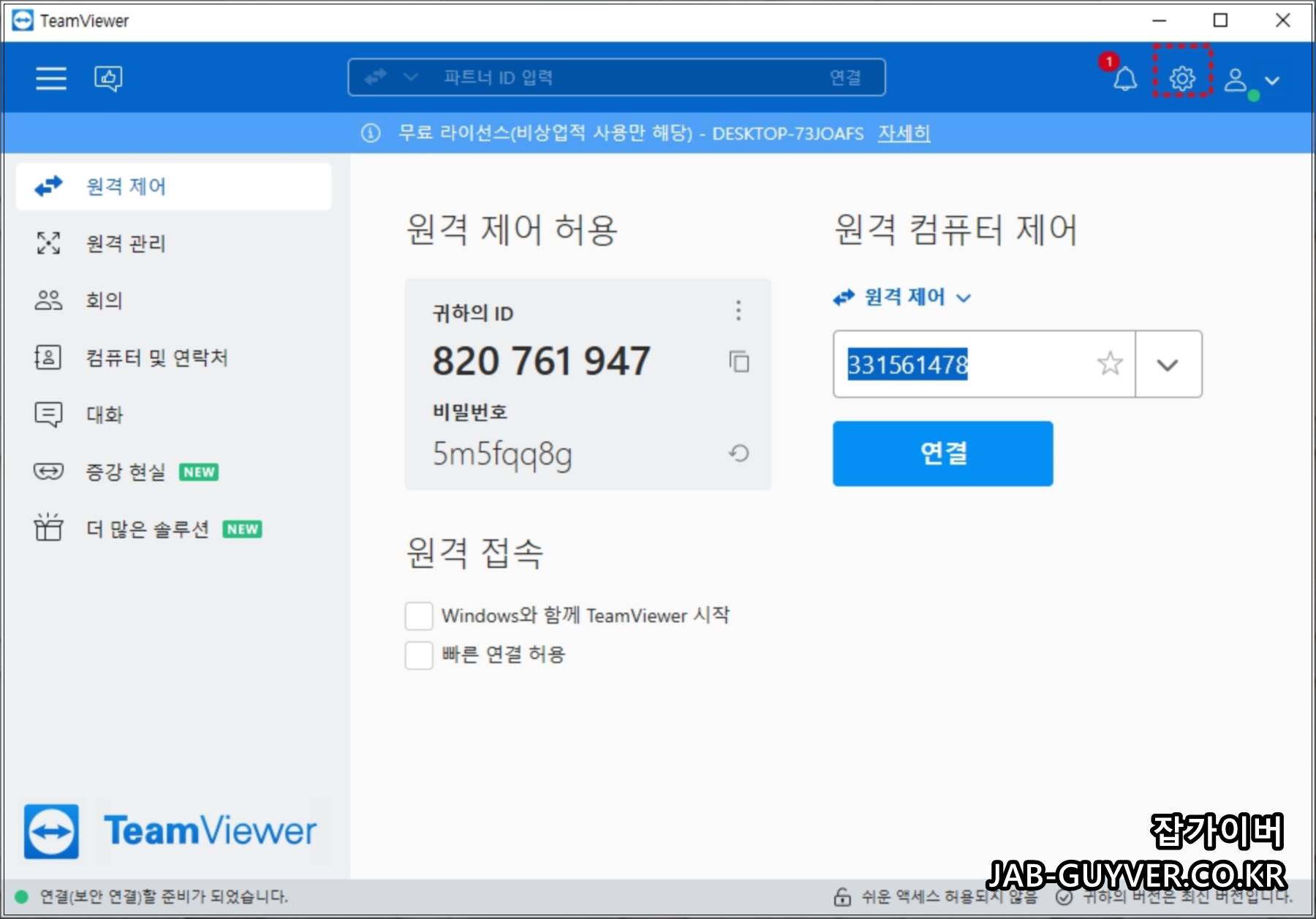 팀뷰어 사용설명서는 위 내용을 참고하세요