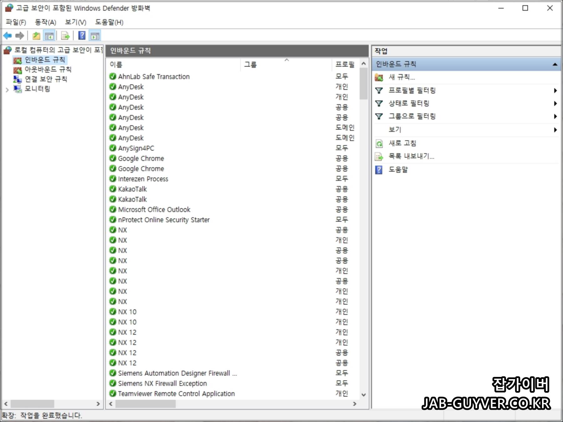 고급보안이 포함된 Winodws Defender 방화벽을 선택 후 인바운드 규칙 및 아웃바운드 규칙을 각각 추가합니다.