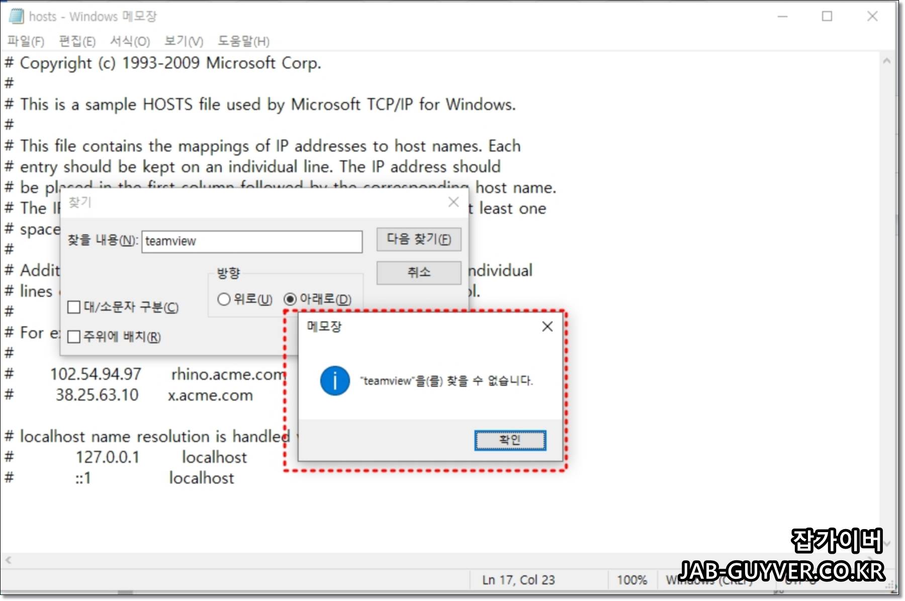 Ctrl + F를 눌러 찾기 "검색"을 통해 Teamview 관련 된 내용이 있는지 확인하고 있다면 삭제합니다.
