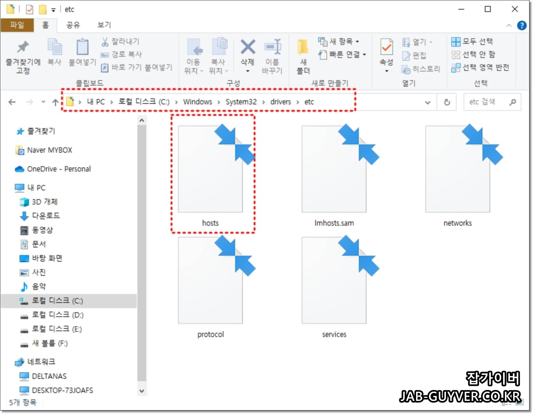 그럼 hosts 파일을 볼 수 있는데 이를 메모장으로 실행합니다.