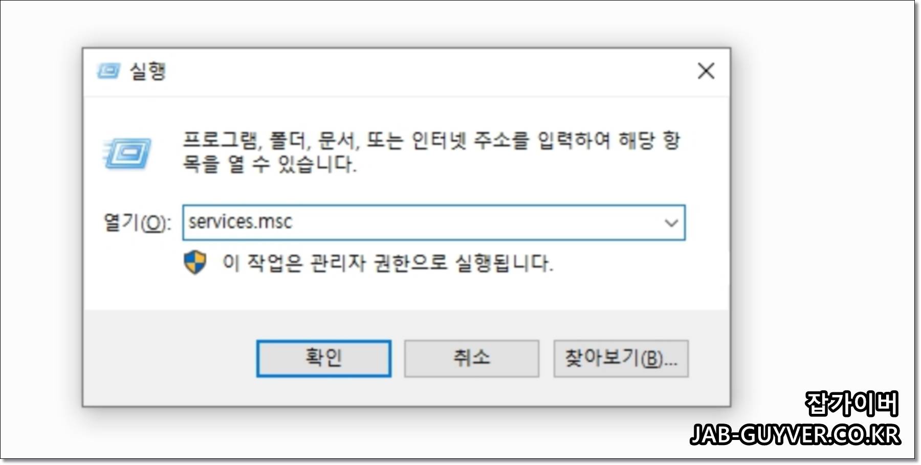 윈도우 + R 눌러 실행창에 "Services.MSC" 입력 후 확인
