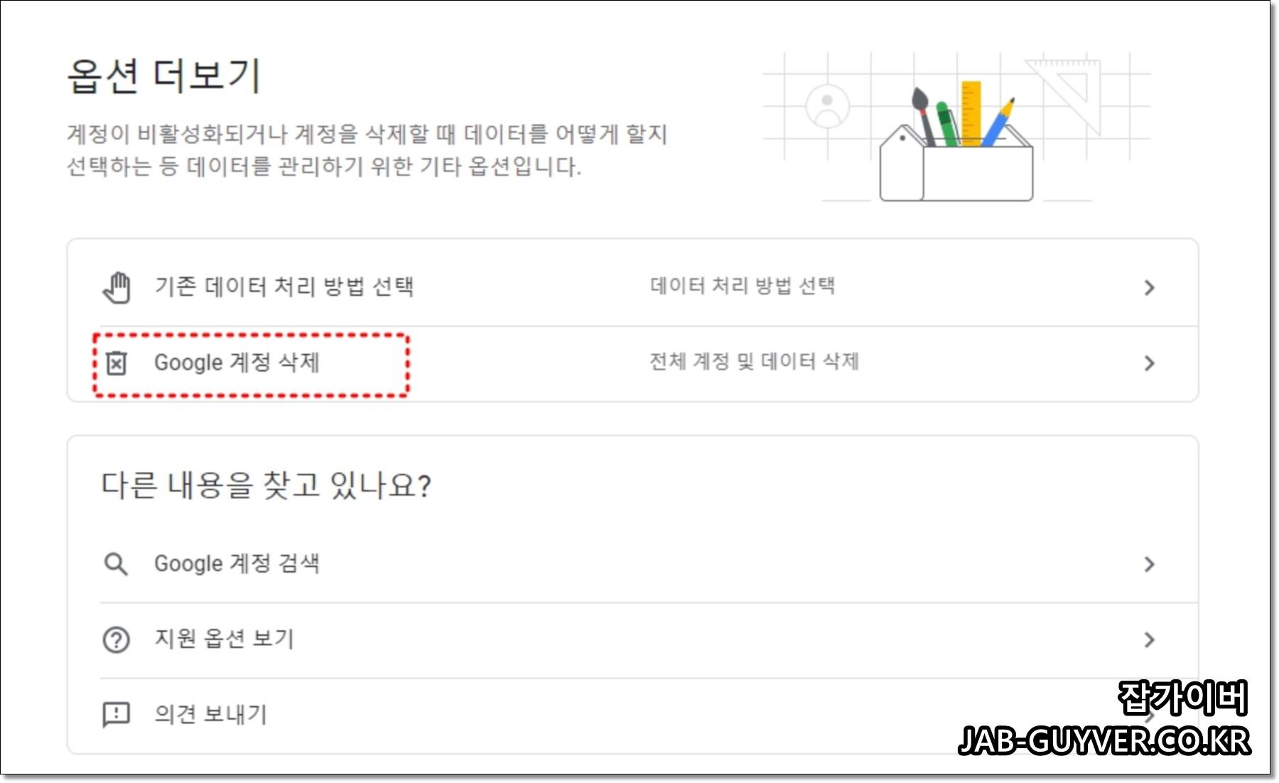 - Google 계정 삭제: 계정 자체를 삭제(메일·포토·Drive 포함 전체 영향)