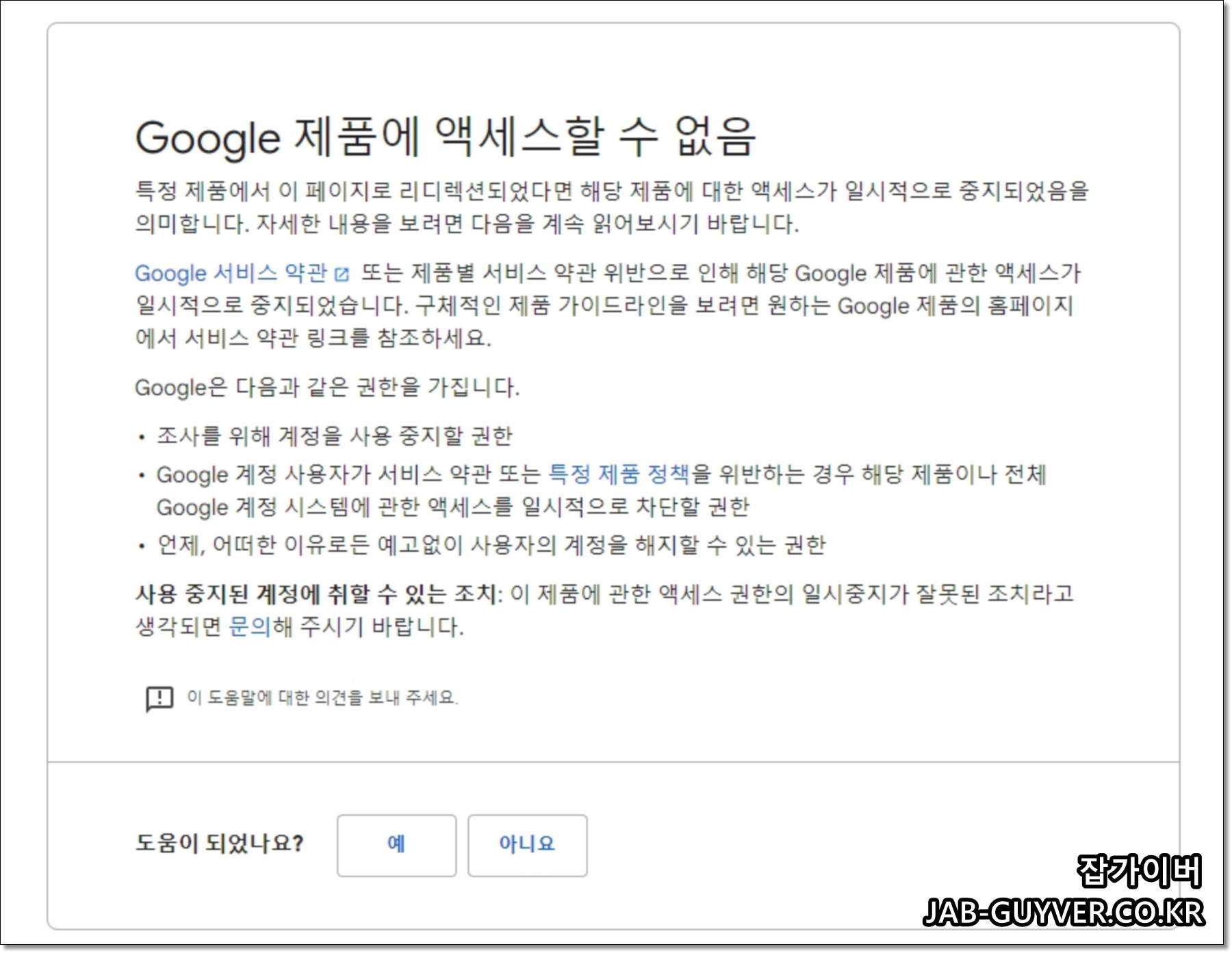 구글 계정 정지 - 제품에 액세스할 수 없음