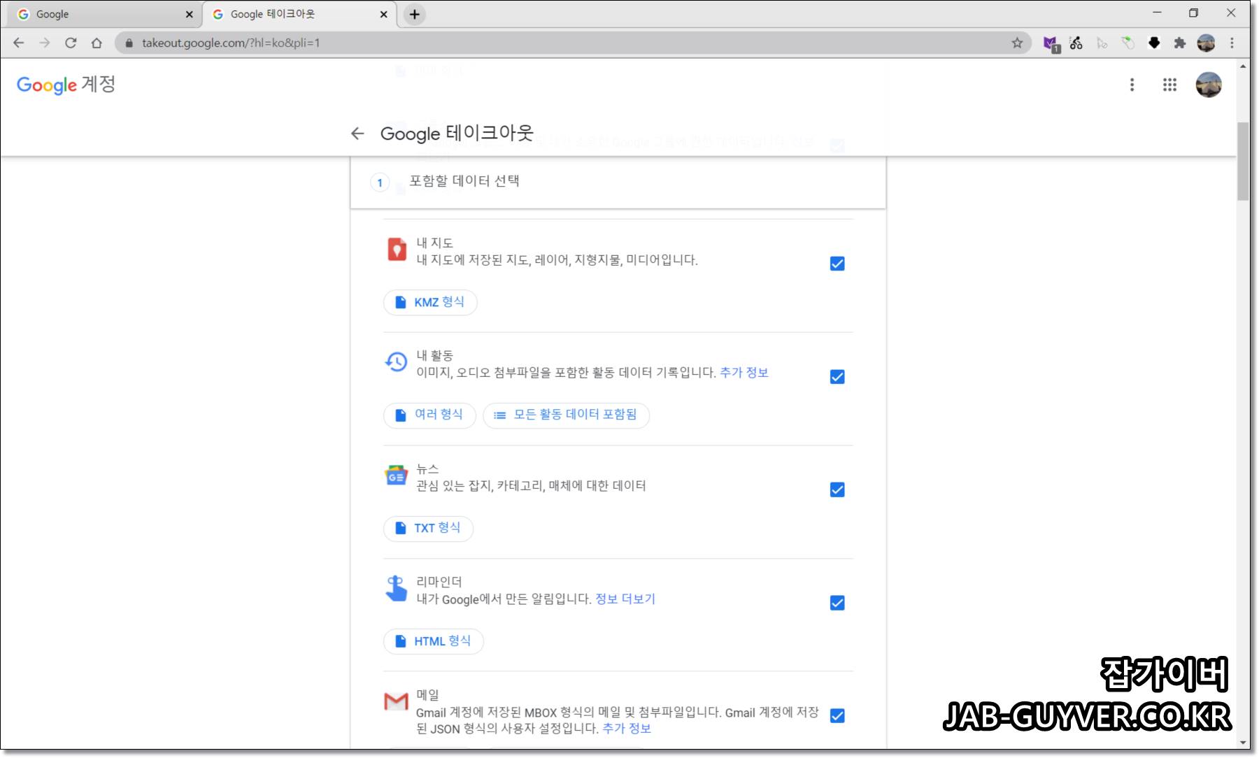 우선 구글계정 탈퇴 전 데이터 다운로드를 통해 백업을 진행합니다.