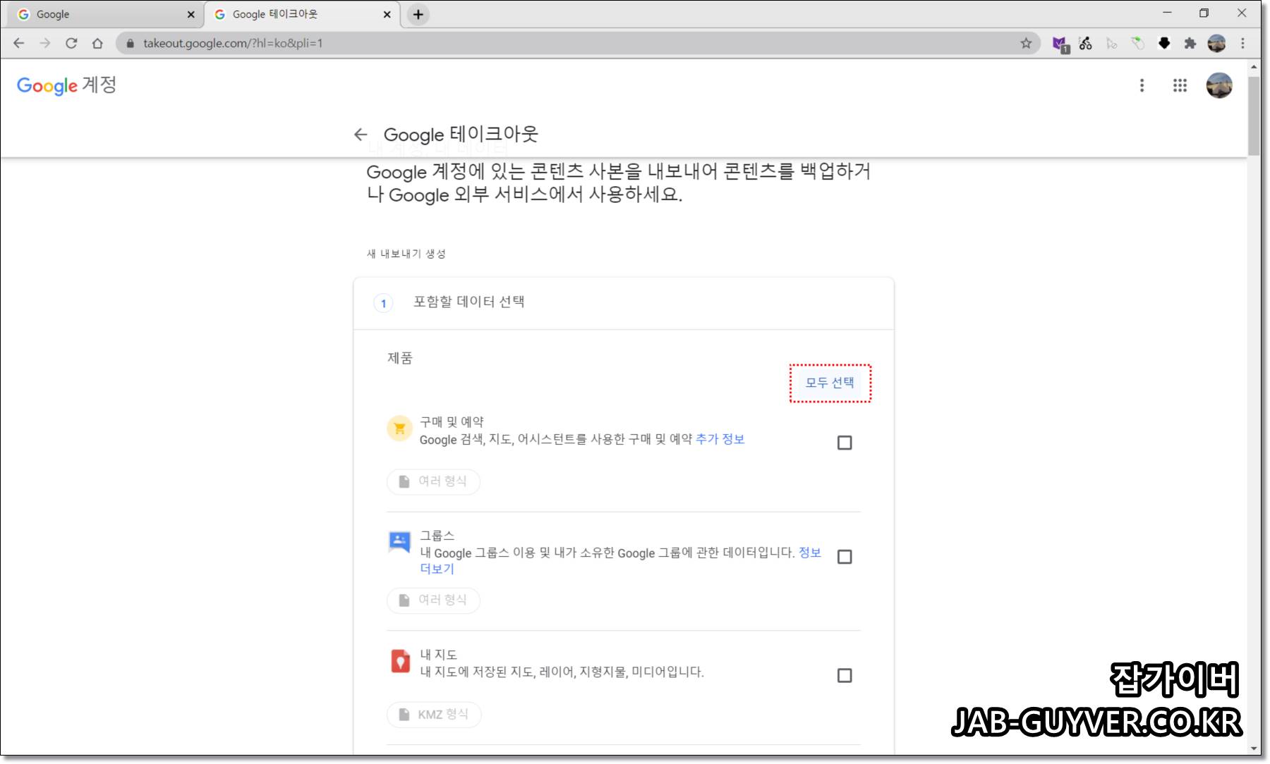 구글 데이터 다운로드 (Google Takeout)