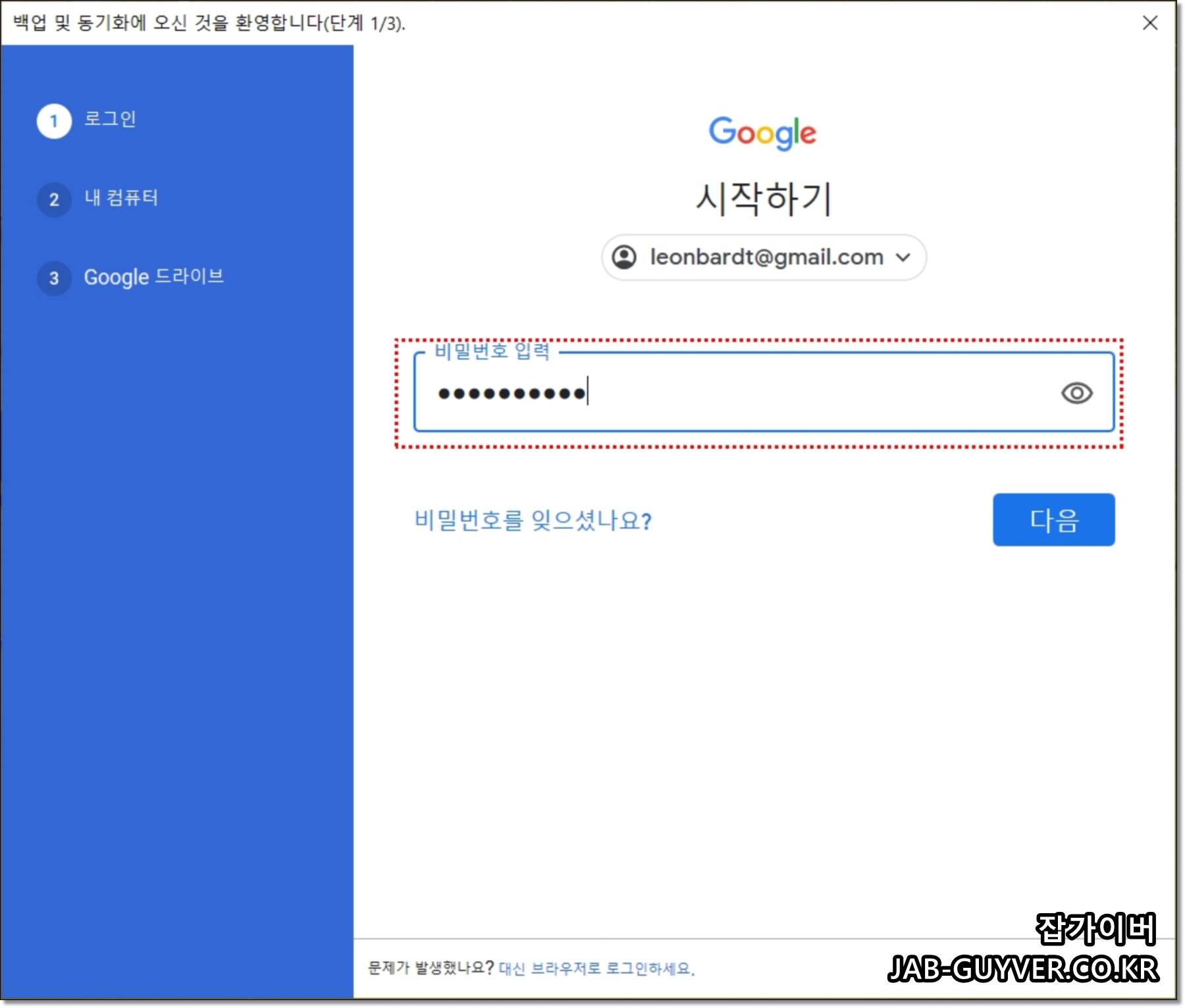 Backup and Syne From Goolge을 실행 후 구글 계정을 로그인합니다.