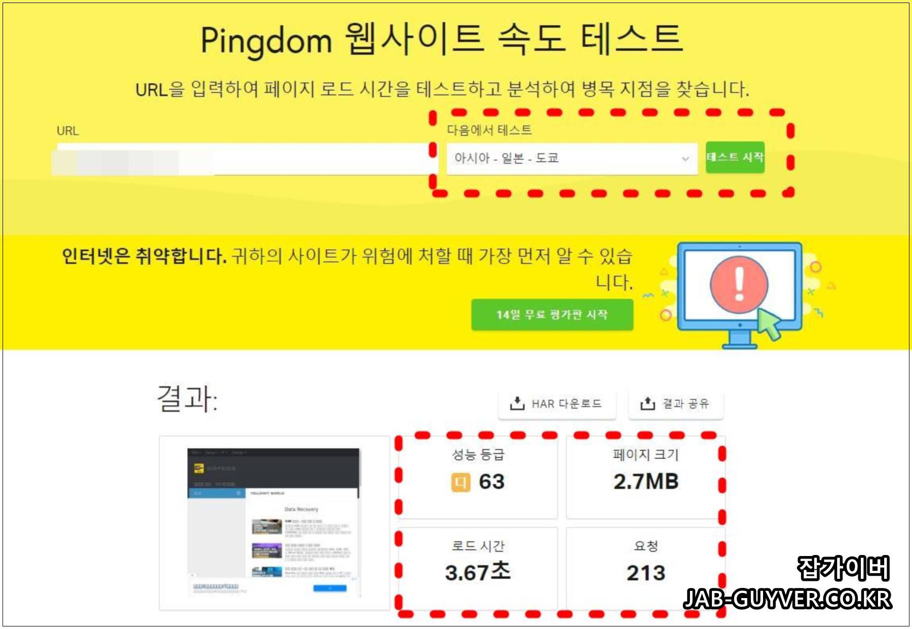 우선 웹사이트의 속도틀 테스트할 수 있는 사이트는 많이 있지만 그중에서도 Pingdom 사이트를 가장 많이 사용합니다.