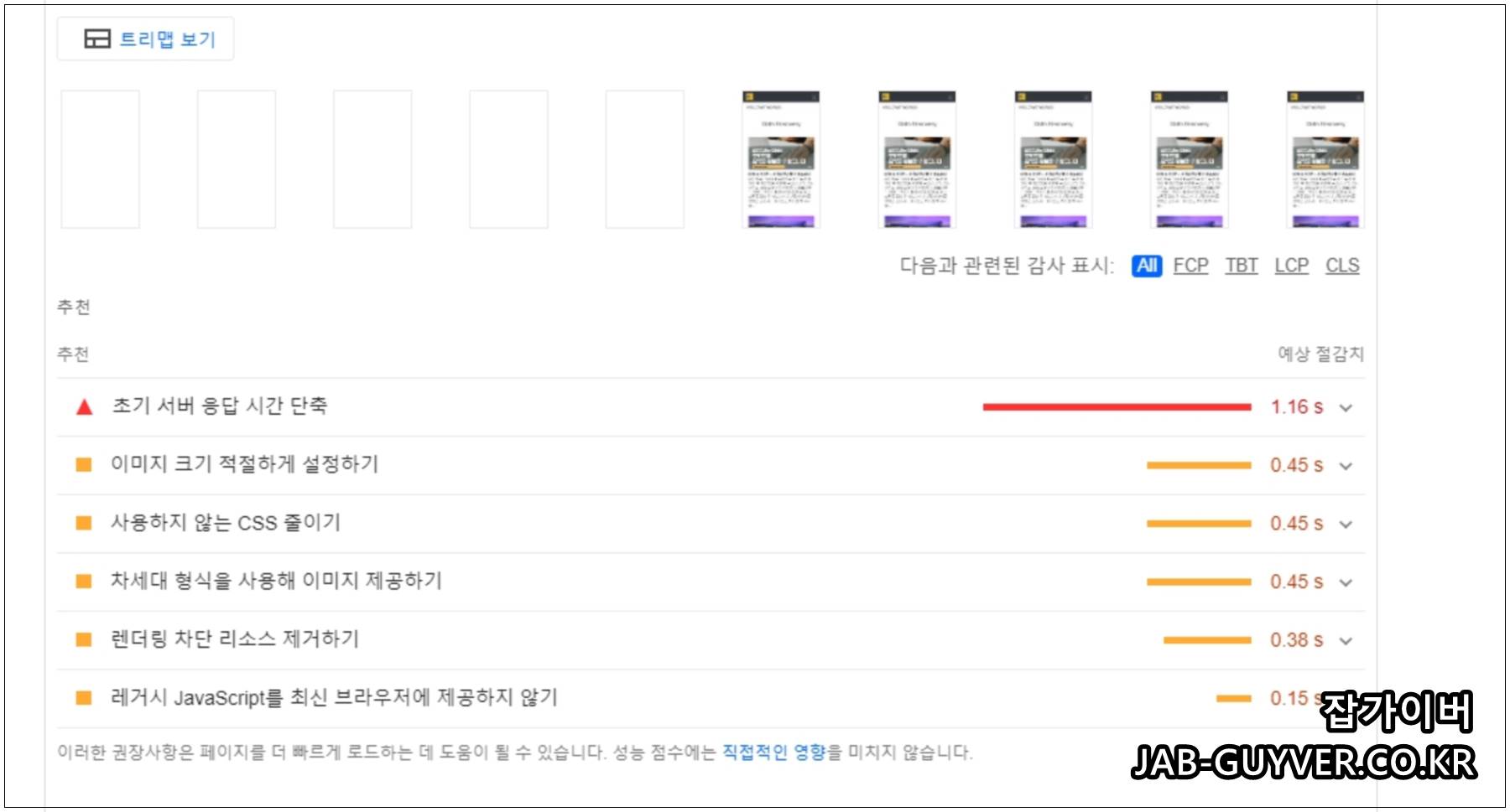 여기서도 사용하지 않는 자바스크립를 줄이고 페이지 제목에 내용을 페이지 내용에 더 적합하다고 합니다.