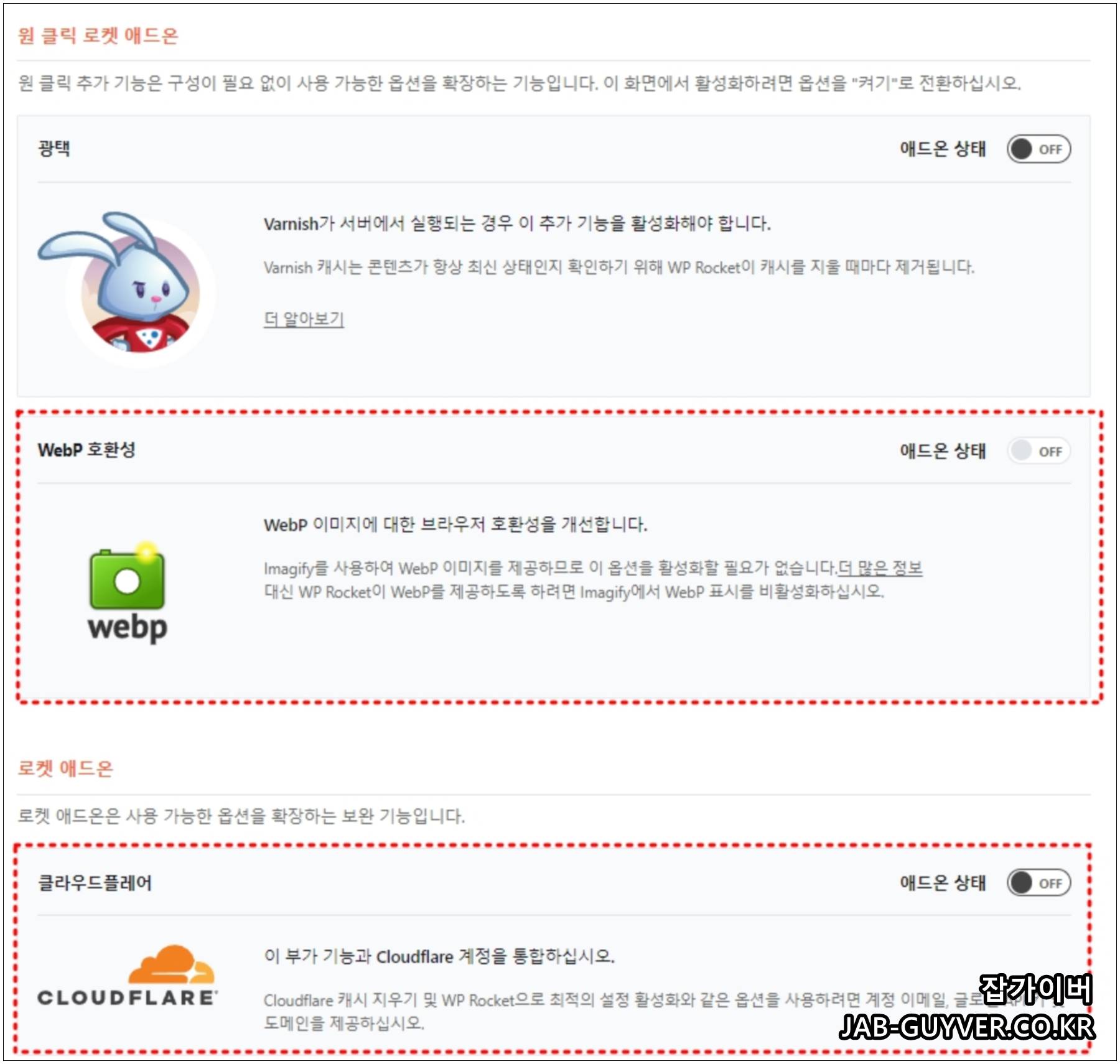 wp-rocket을 사용하면 Webp 이미지 변환 및 클라우드플라워 "CloudFlare"를 통한 웹사이트 속도를 개선하고 방화벽 및 보안등을 최적화할 수 있습니다.