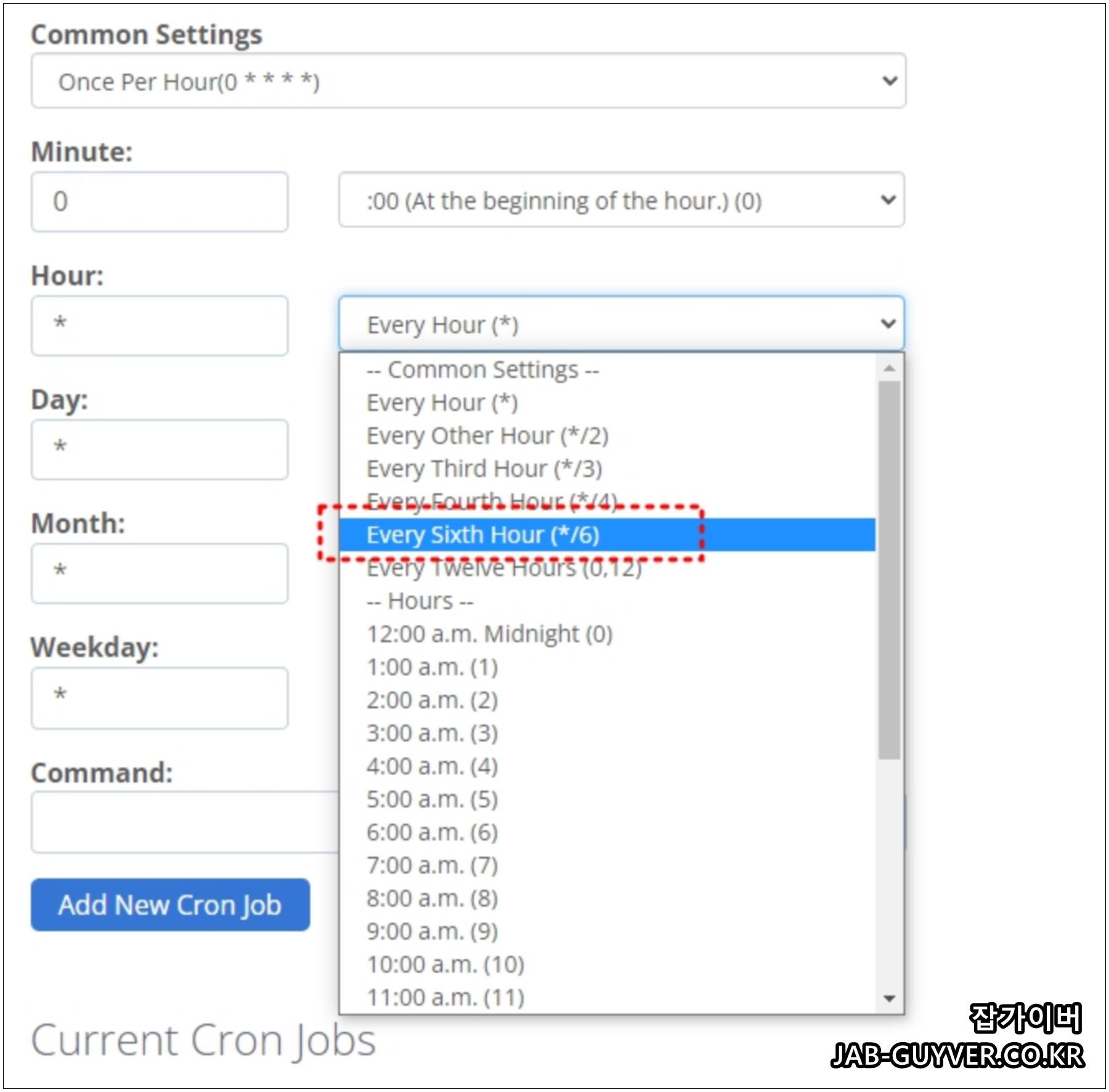 모든설정을 완료하면 Current Cron Josb 추가된것을 확인합니다.