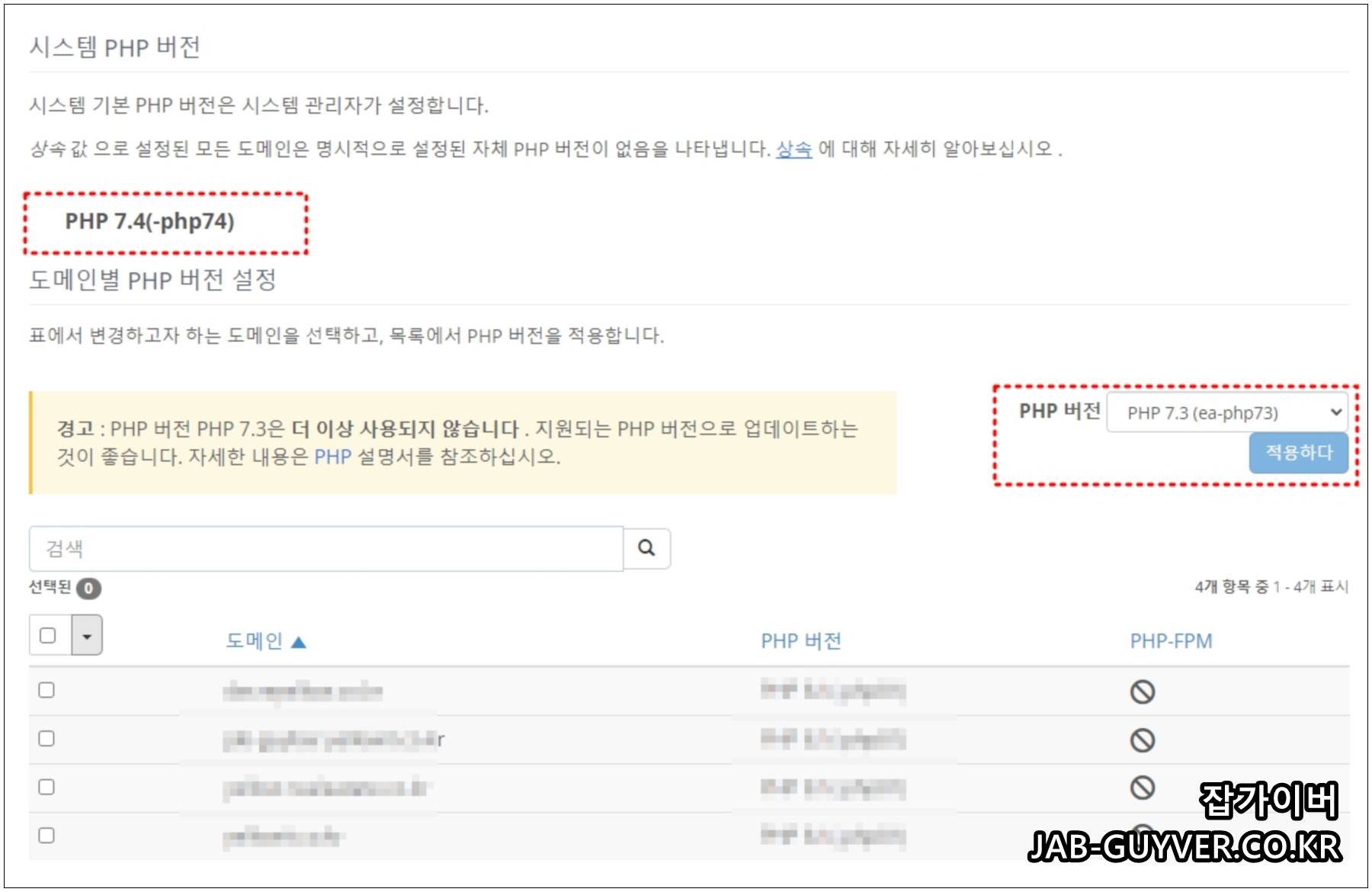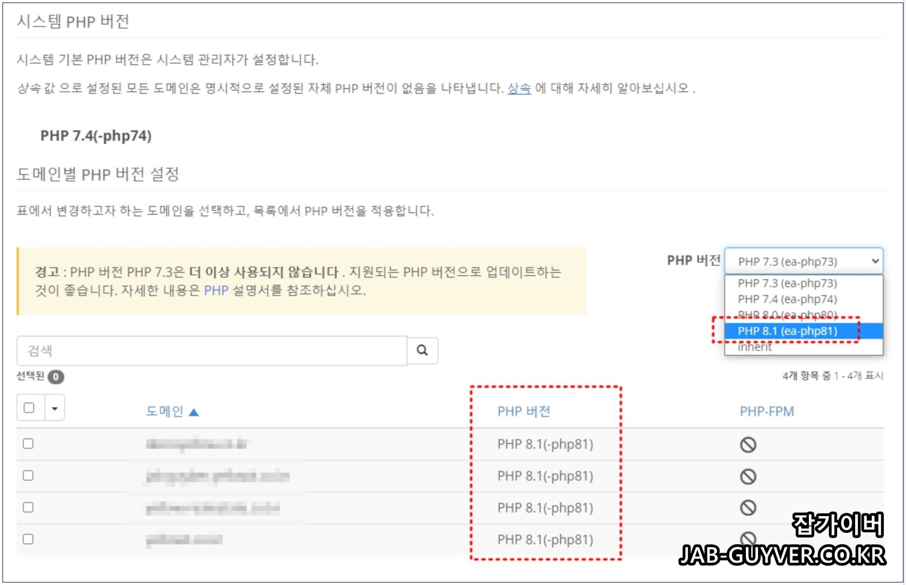 PHP 버전의 경우 7.3은 더이상 사용되지 않으며 2022년 11월 기준 가장 최신버전인 PHP 8.1 업데이트합니다.