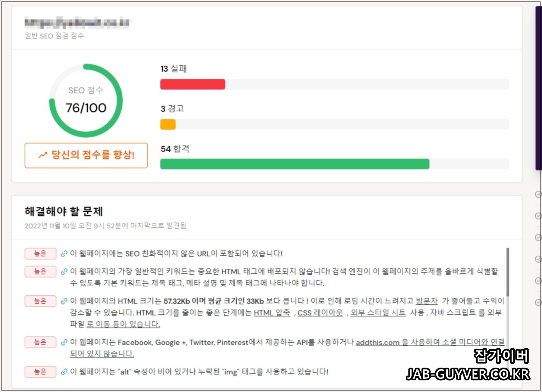 이를 통해 현재 관리하고 있는 워드프레스 페이지 접속속도 및 문제점을 확인해볼 수 있습니다.