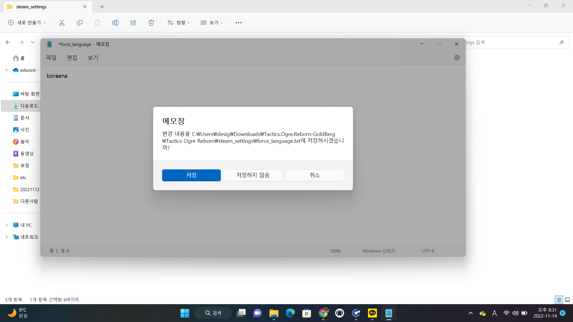 메모장 파일을 실행 후 koreana 입력 후 저장합니다.