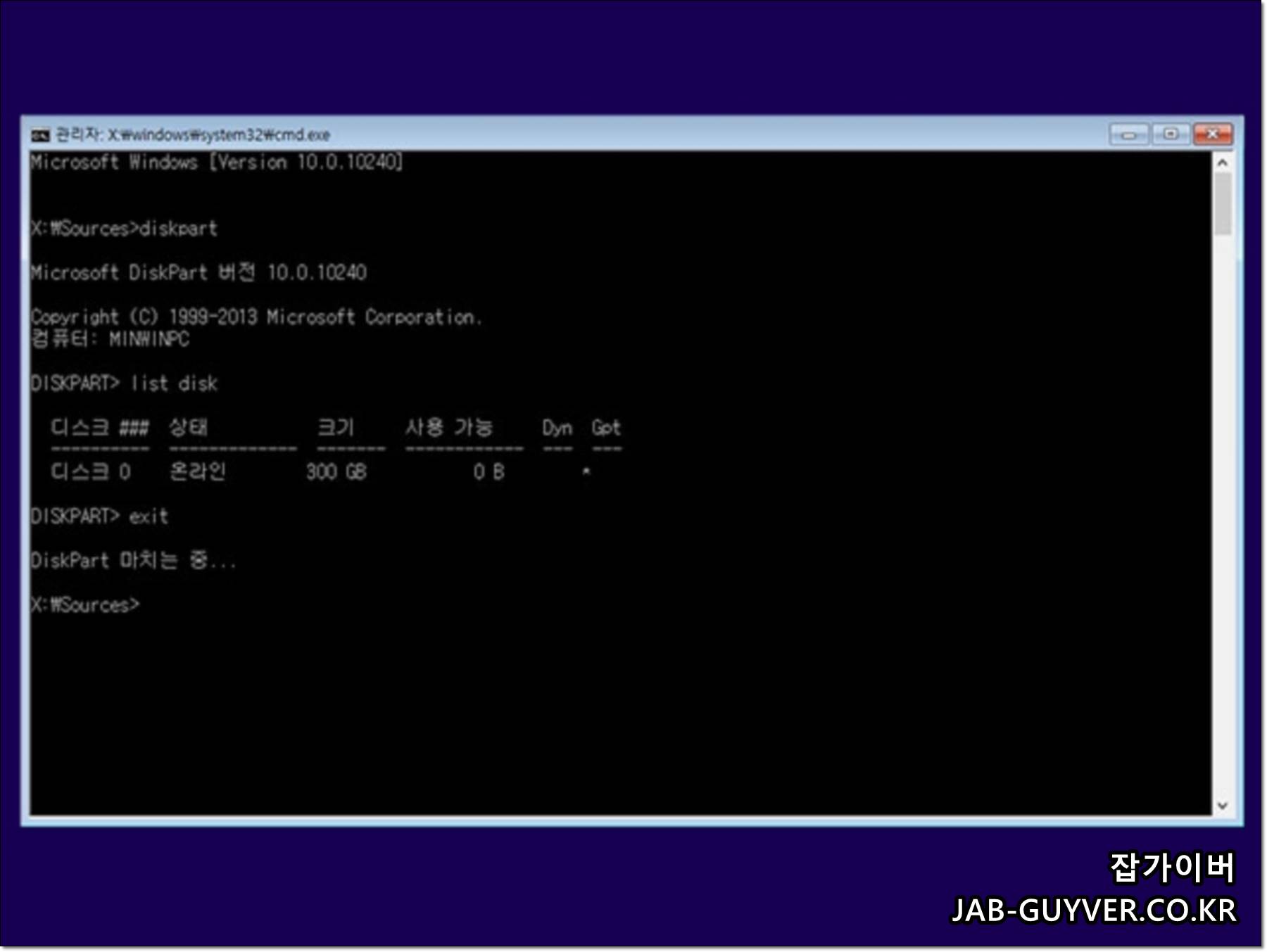 - DISKPART 입력 후 엔터
