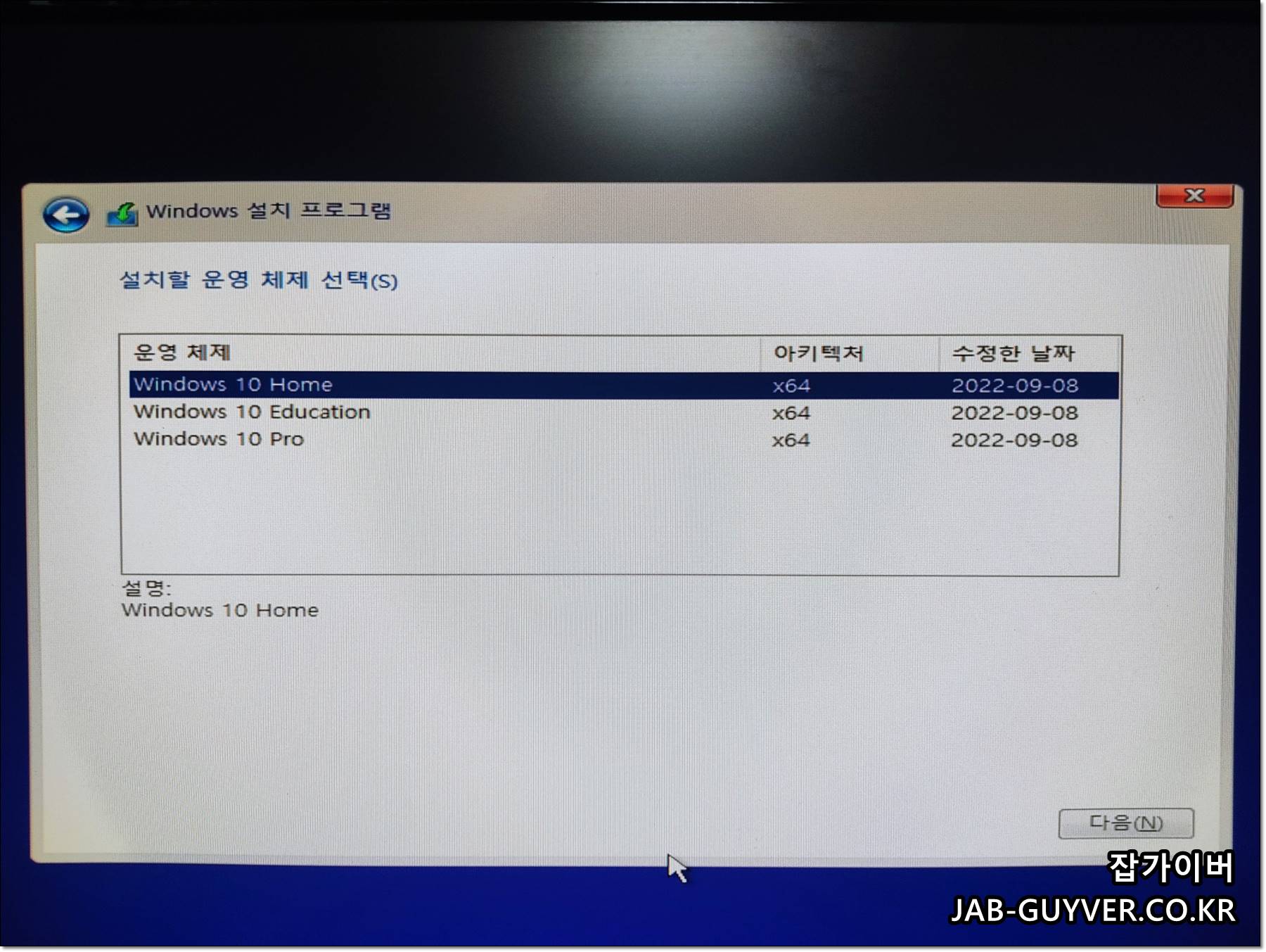 원하는 윈도우10 홈, 윈도우10 교육용, 윈도우10 프로 버전등을 선택합니다.
