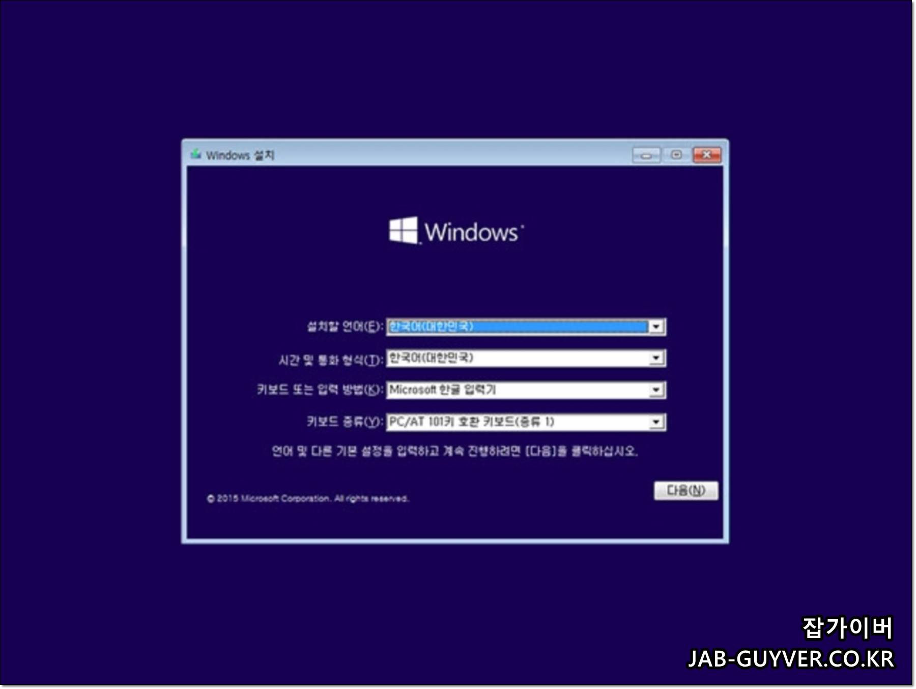 윈도우7, 윈도우8, 윈도우10, 윈도우11 등 설치화면으로 들어갑니다.