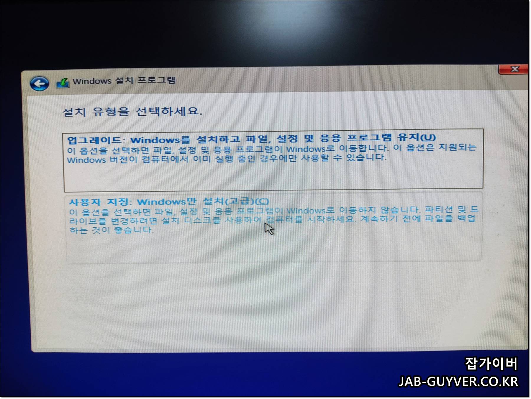 윈도우 업그레이드 : 기존 윈도우 추가 업데이트 (기존파일 유지)