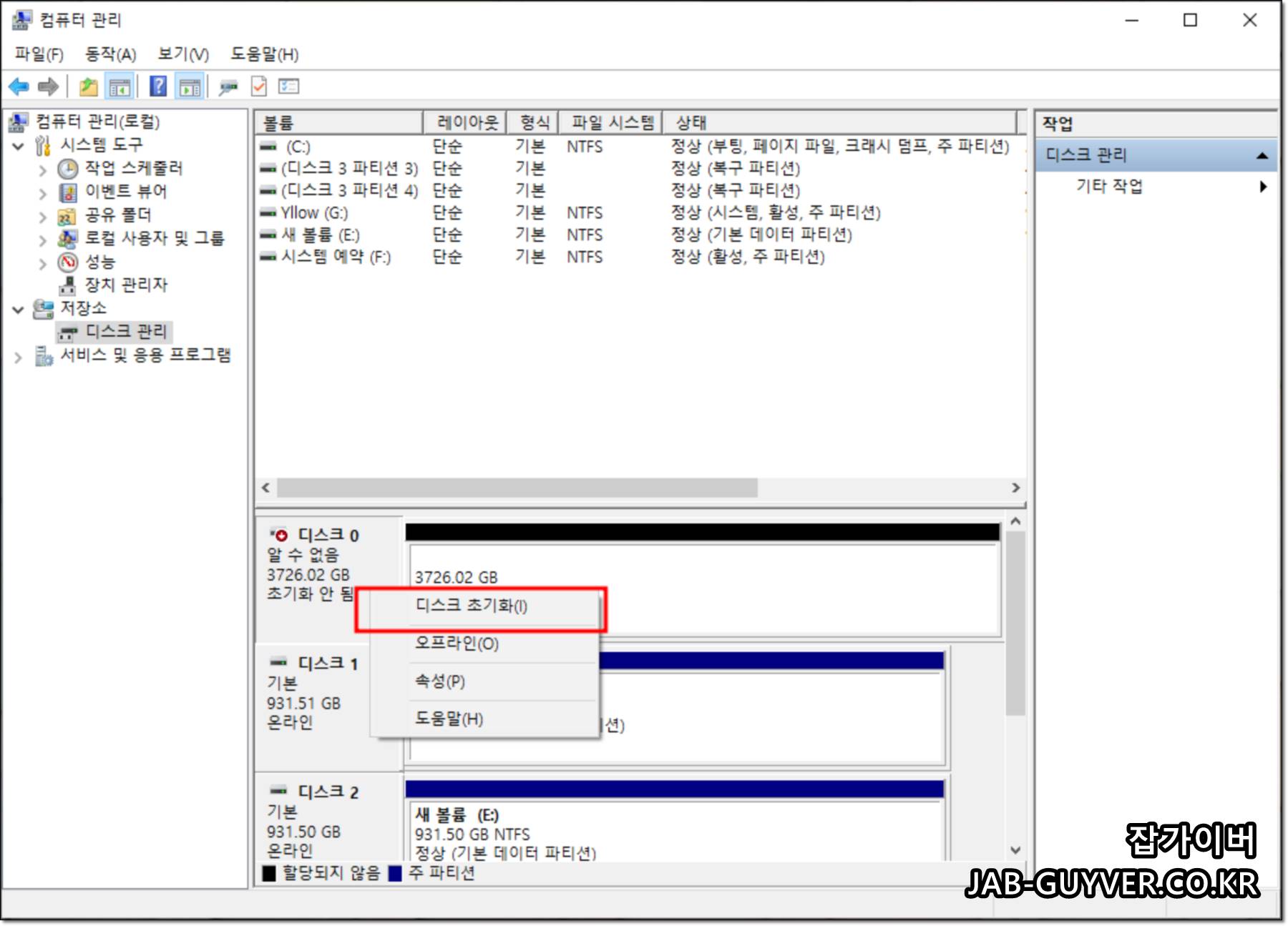 윈도우 파티션 디스크관리