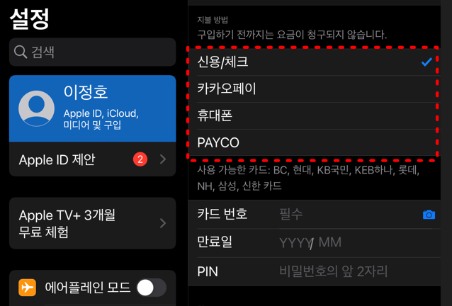 Apple ID 국가/지역과 카드 발급 국가 맞추기