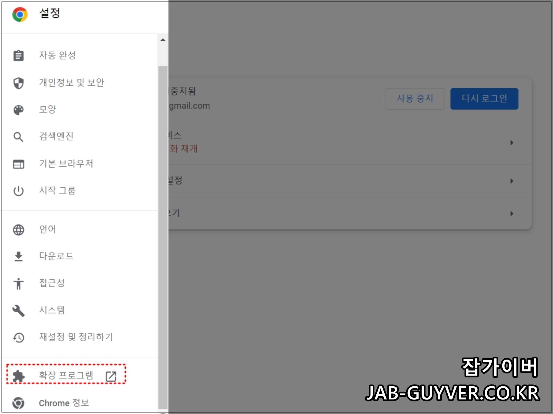 흔치 않지만 크롬의 확장프로그램이 충돌을 일으키는 경우도 있습니다.