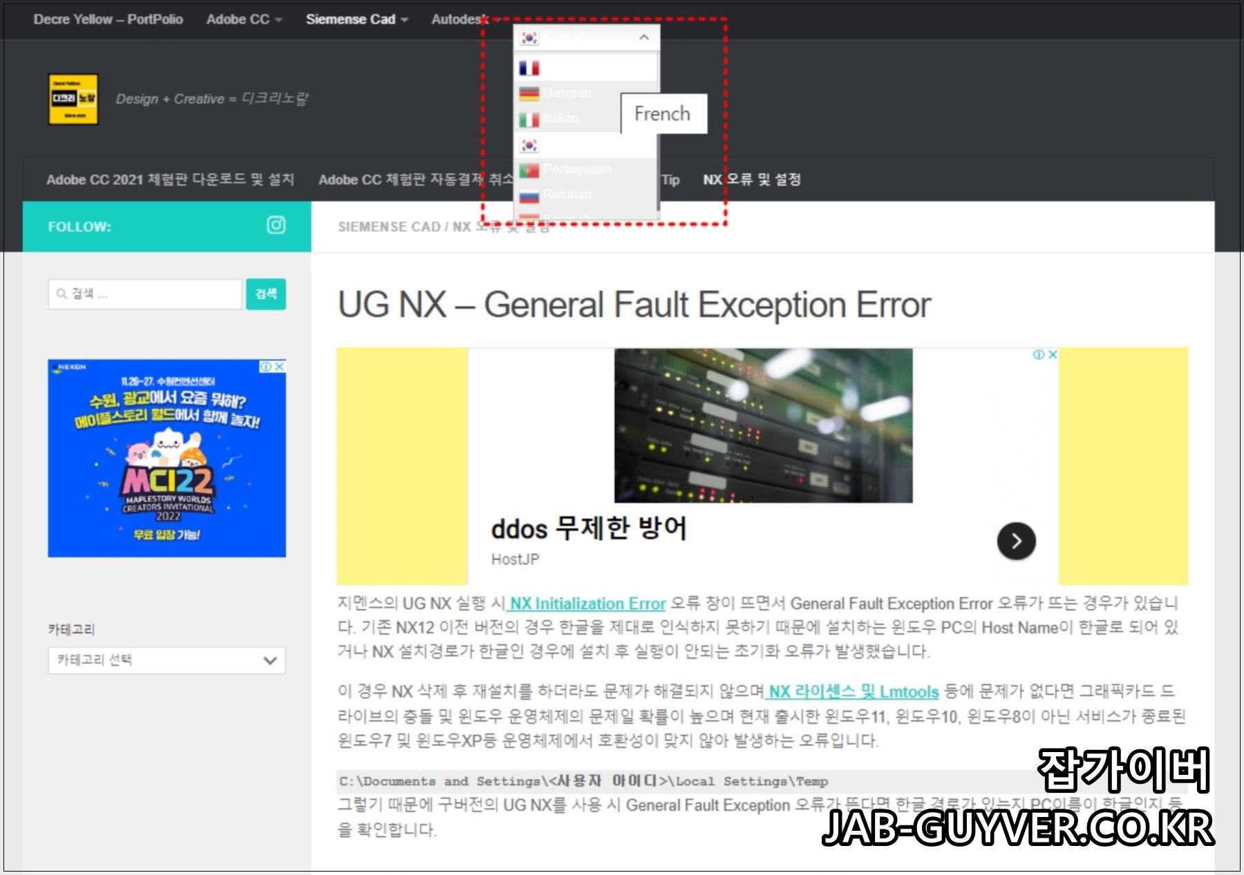 텍스트 본문글 외에도 카테고리나 추천글등 모든 부분이 자동번역됩니다.