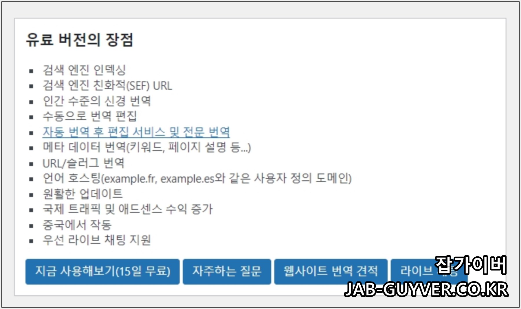 기본적으로 무료버전이 아닌 유료버전을 사용하면 각 기능을 사용해 번역페이지를 만들 수 있습니다.
