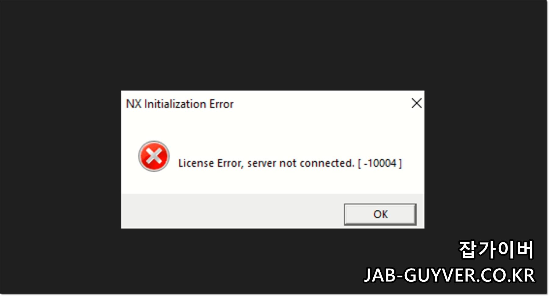 UG NX 실행 시 nx initialization error - License Error, Server Not Connected. [-10004] 오류가 발생하느것으로 말그대로 라이센스가 서버와 연결되지 않았다는것을 의미합니다.