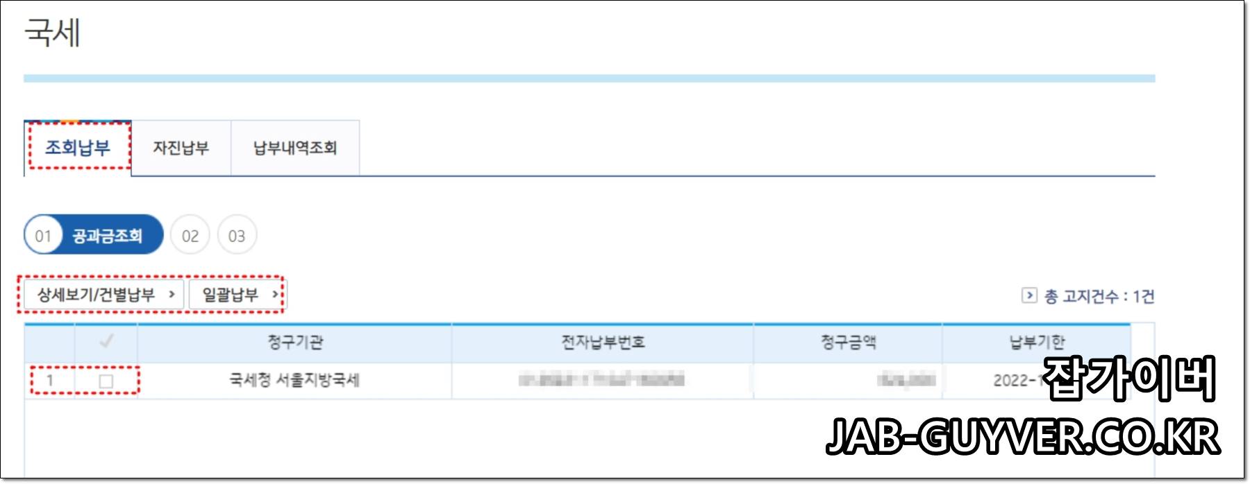공과금 -> 국세를 선택합니다.