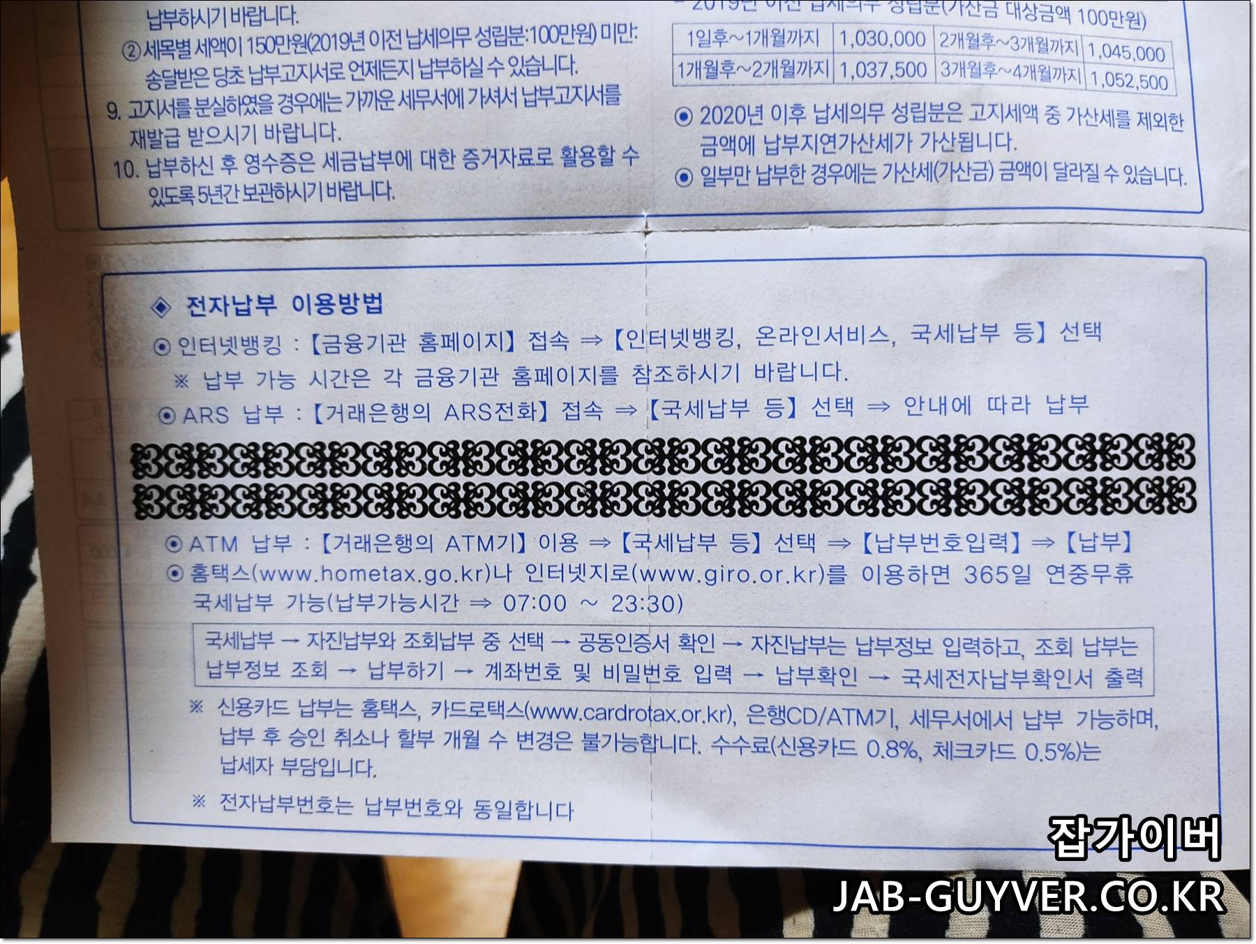 - 카드로택스 납부 시 할부 가능하나 신용카드 0.8%, 체크카드 0.5% 납세자 수수료