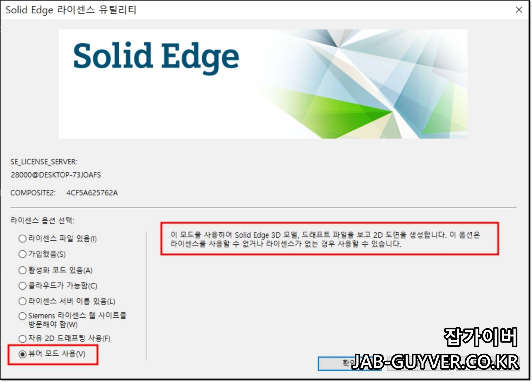 솔리드엣지 설치가 완료 후 실행 시 라이센스 오류가 발생한다면 Solid Edge 라이센스 유틸리티를 통해 라이센스 파일을 다시한번 확인합니다.