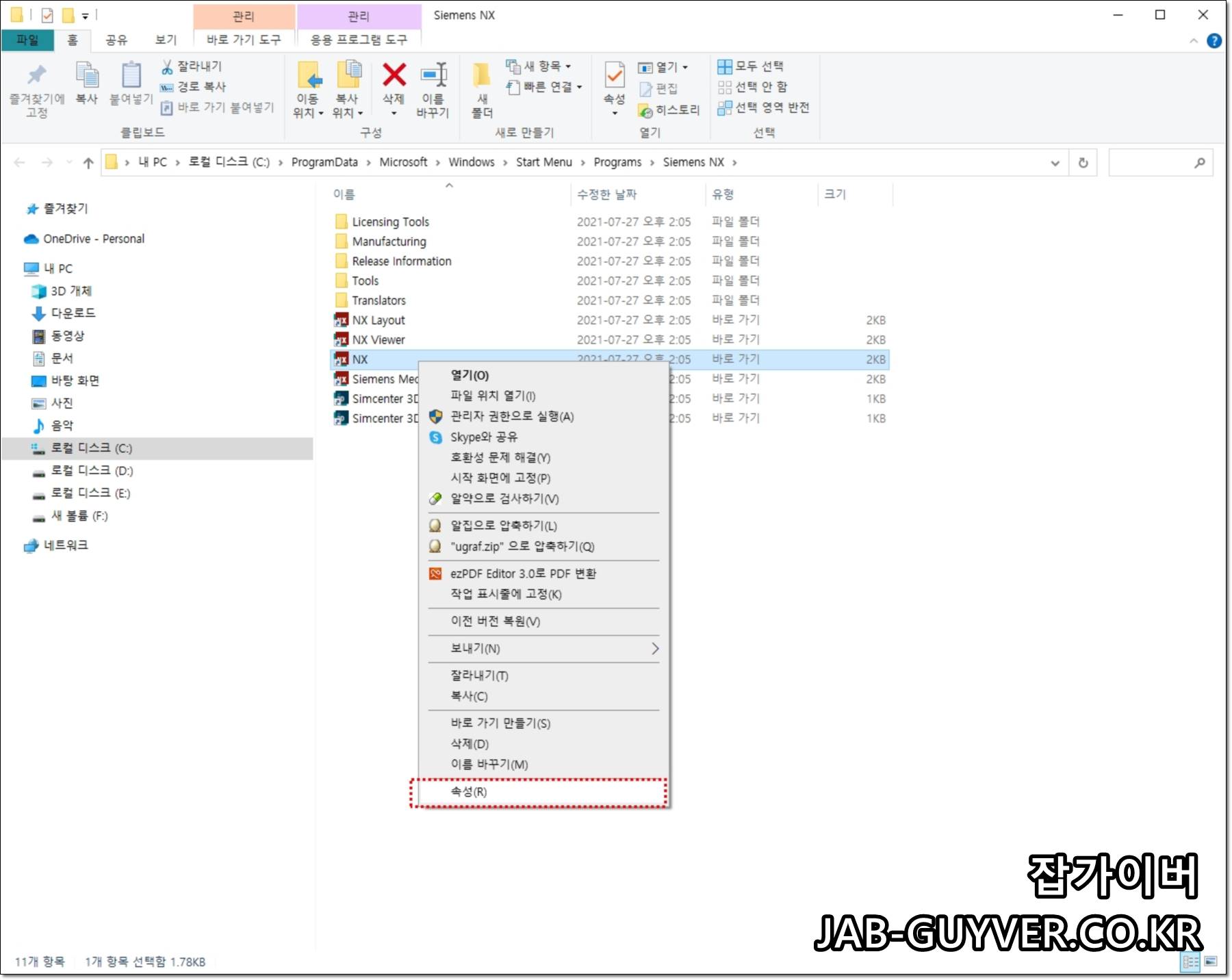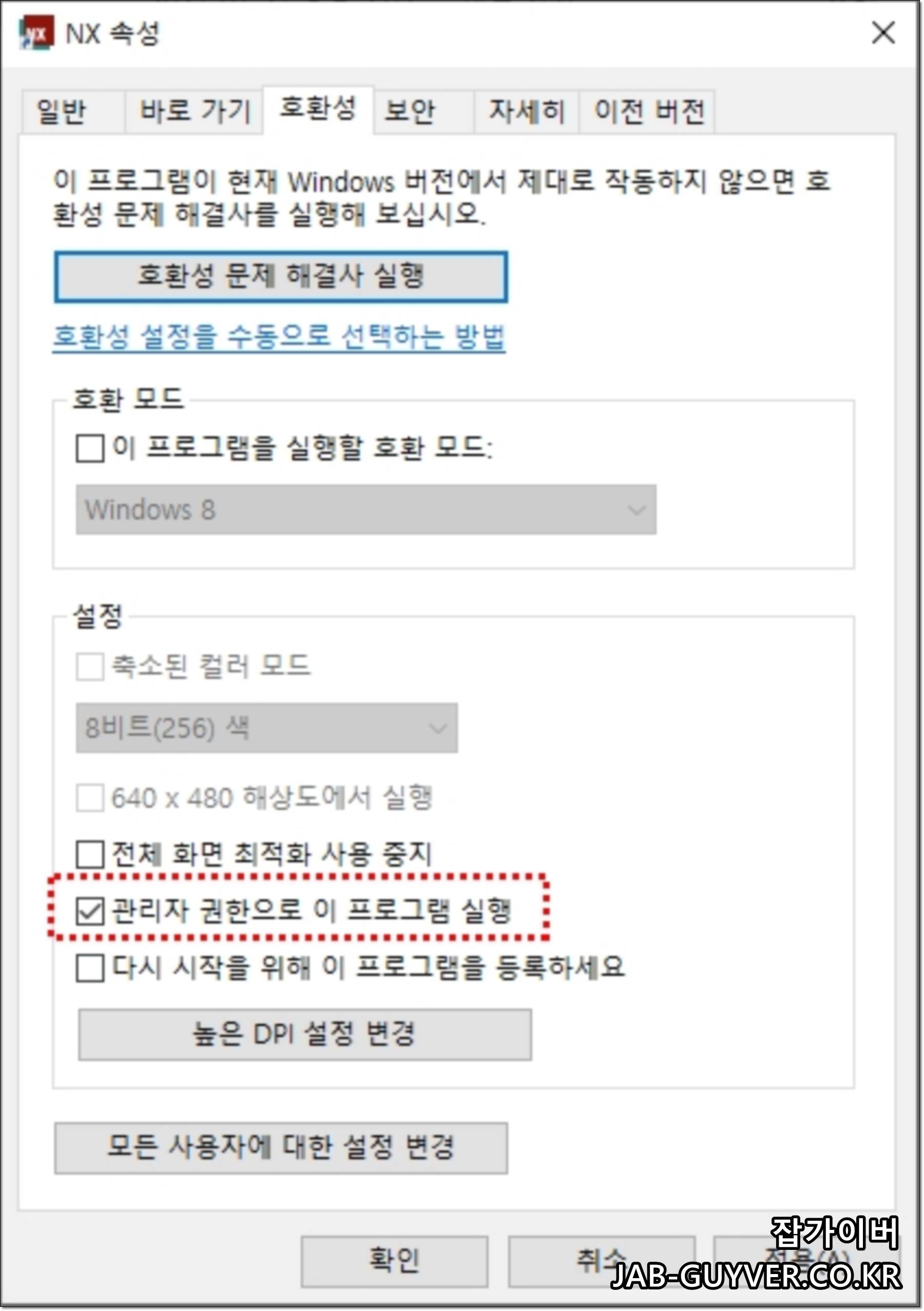 UG NX 관리자권한 항상 실행되도록 고정설정